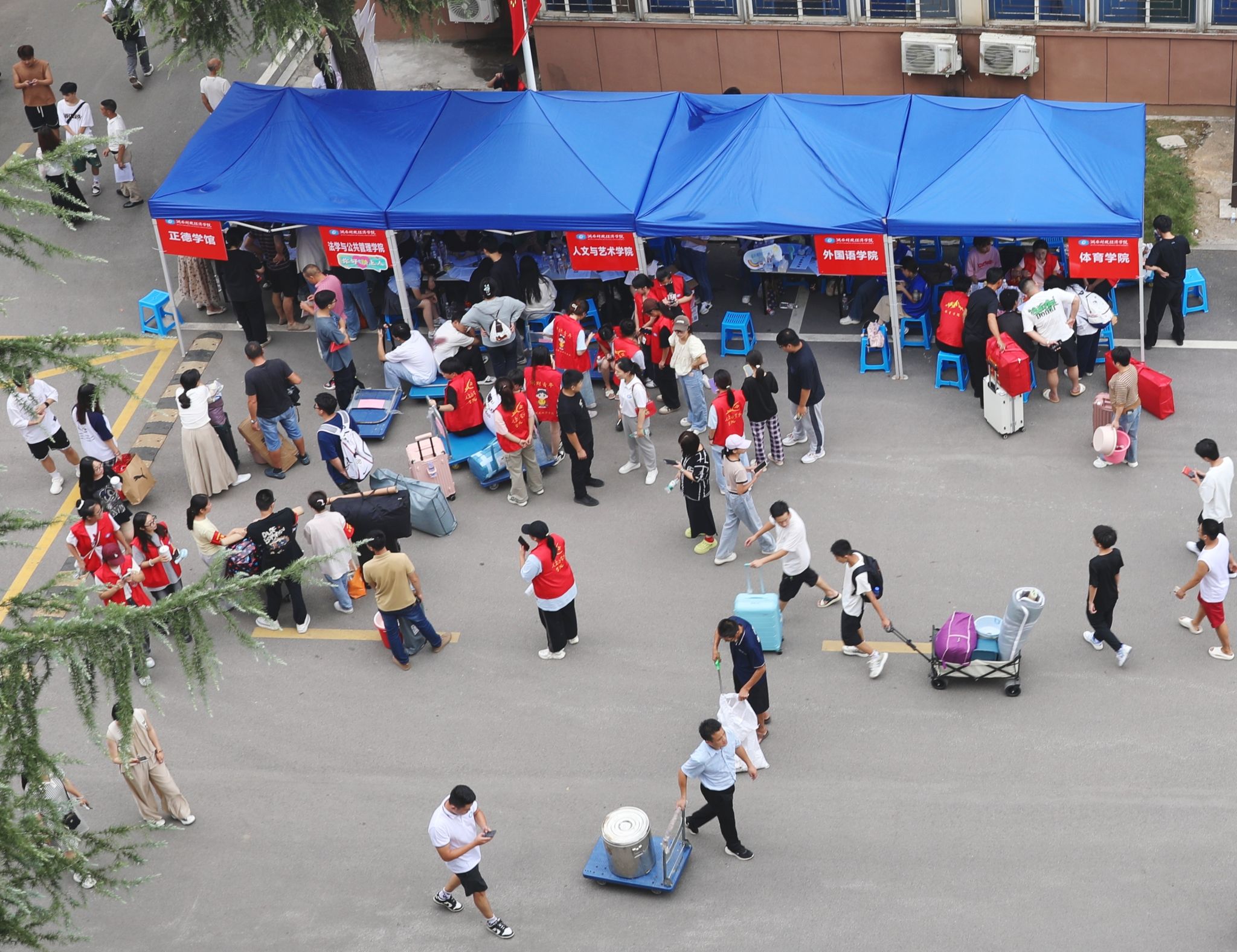 据了解,新生在来校前,通过学校智慧迎新系统完成信息采集、学杂费缴纳、军训用品登记、生活用品选购、线上入学教育、宿舍查询、绿色通道审批等流程,与湖财提前“云”见面。线下报到更是实现入校全程“零负担”,15台转运车在地铁站和雷锋校区往返运行,供学生及家长免费乘坐、运送行李;600余名师生志愿者提前到达工作岗位,负责迎新接站、行李搬运、校园引导、注册报到、答疑解惑等工作,两日内接待了近2万人次。报到工作结束后,学校将陆续开展入学教育、开学典礼、新生军训等工作。