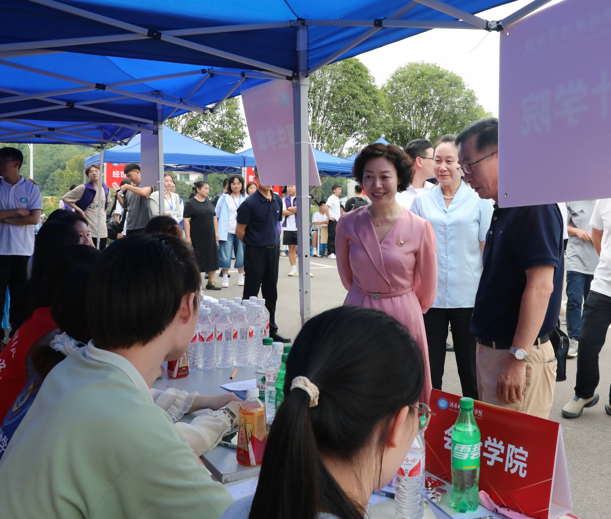 报到当天,校党委书记杨兰英、校长刘长庚、党委副书记苏玲、副校长潘爱民分别前往主校区、雷锋校区迎新接待处、学生寝室及食堂,详细了解新生报到及迎新工作开展情况,慰问参与迎新的师生员工,与新生、家长亲切交谈。