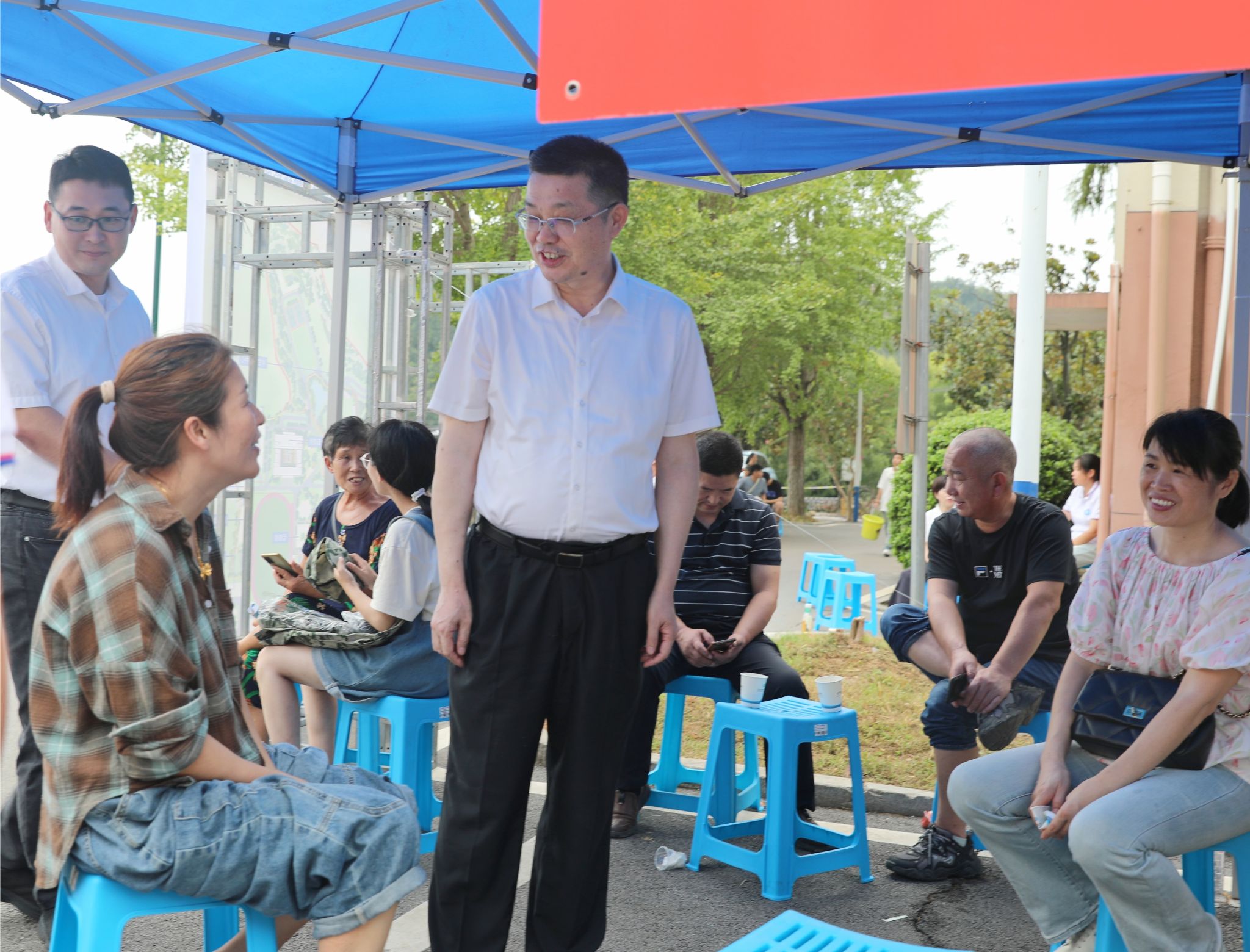 校长刘长庚与新生家长交谈 邓柳/摄