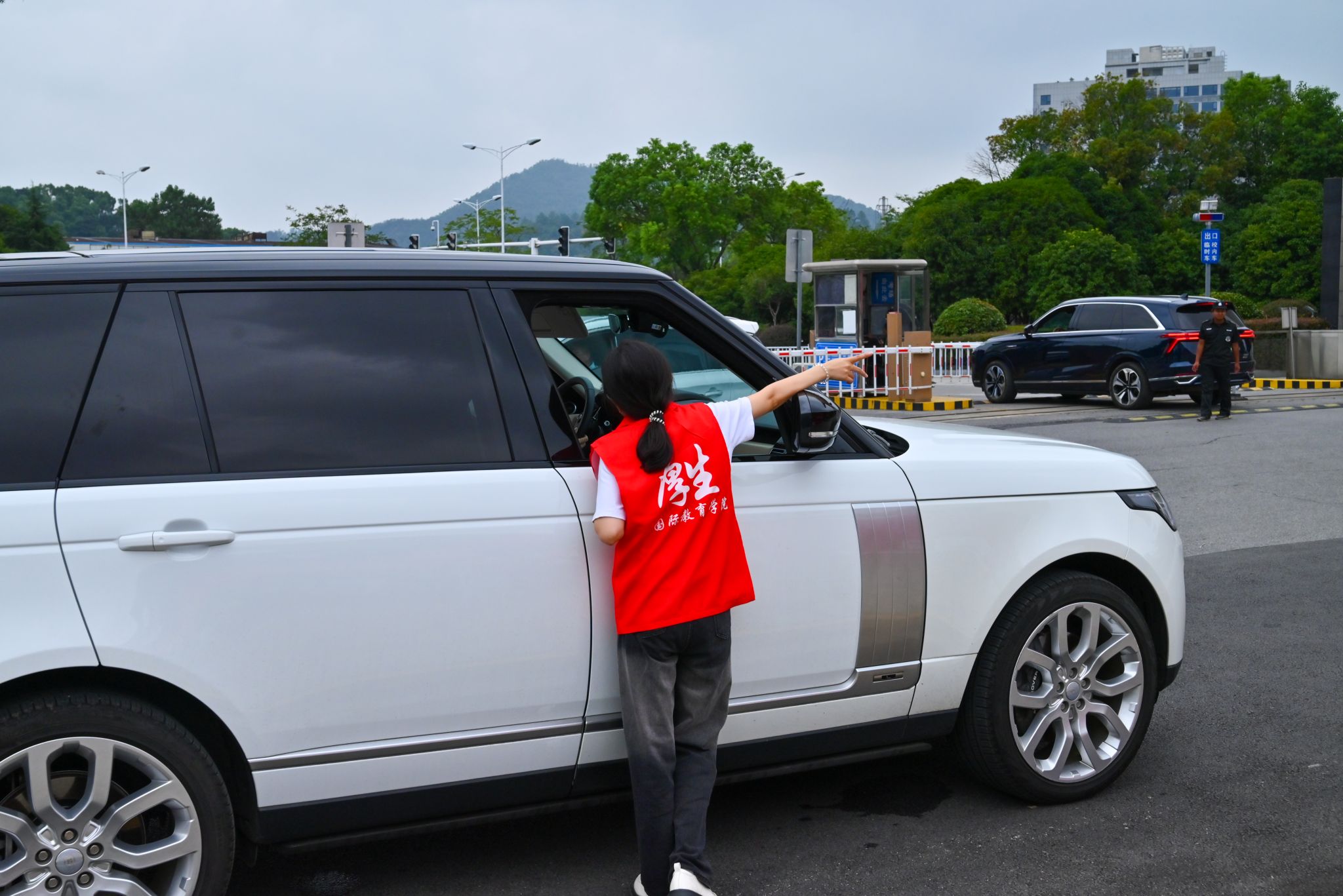 志愿者为新生家长指引路线 马致炫/摄
