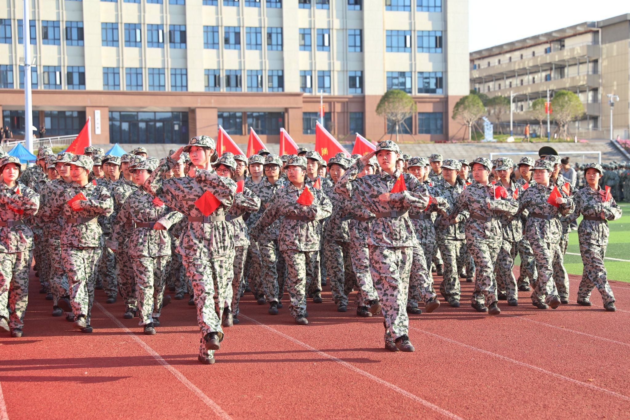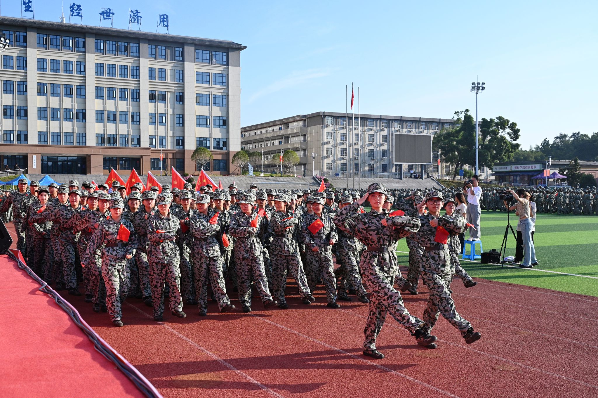 (本网讯)金秋九月,燃情湖财。9月30日上午,学校2024级学生军训总结表彰大会在雷锋校区田径场举行,6000余名学子身着戎装,以最饱满的热情汇报军训成果。
