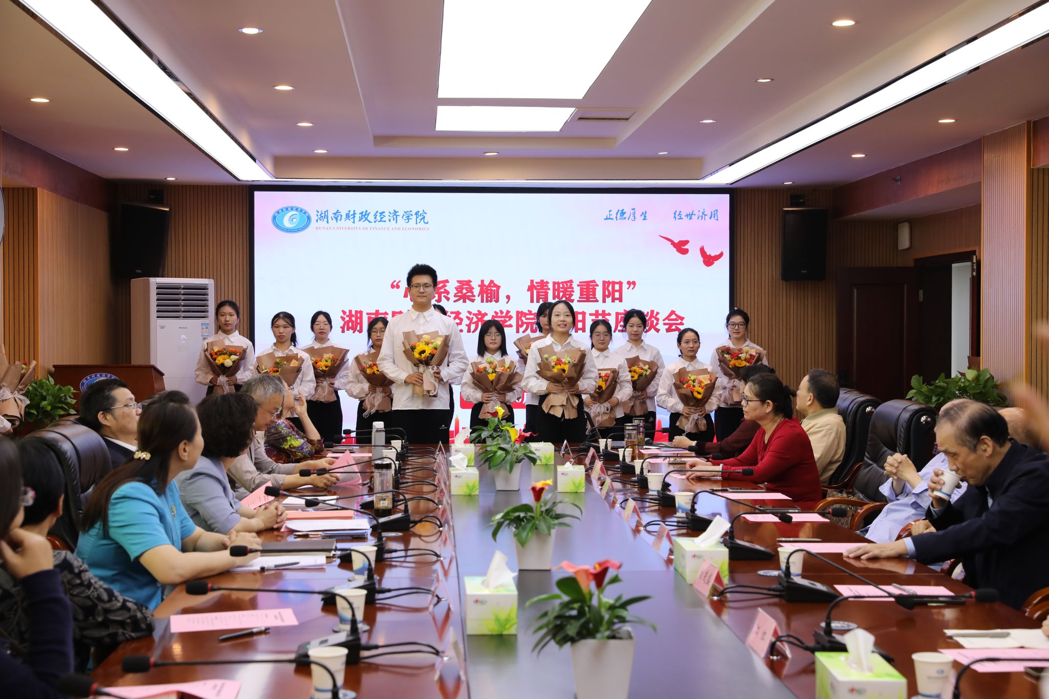 会上,刘钟理致重阳节贺词,并介绍了学校离退休工作的做法与成效。12名学生代表为老同志献上饱含深情的诗歌《莫道桑榆晚,秋日胜春朝》。校领导向退休老干部、老教师代表赠送了鲜花和贺卡。
