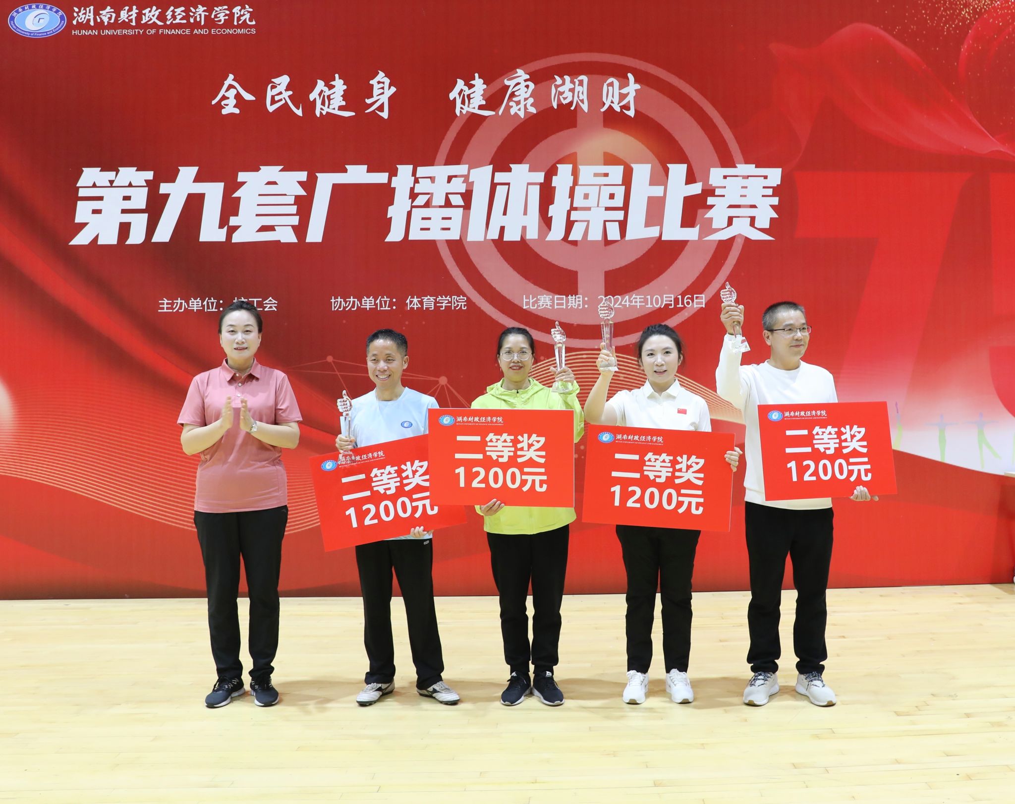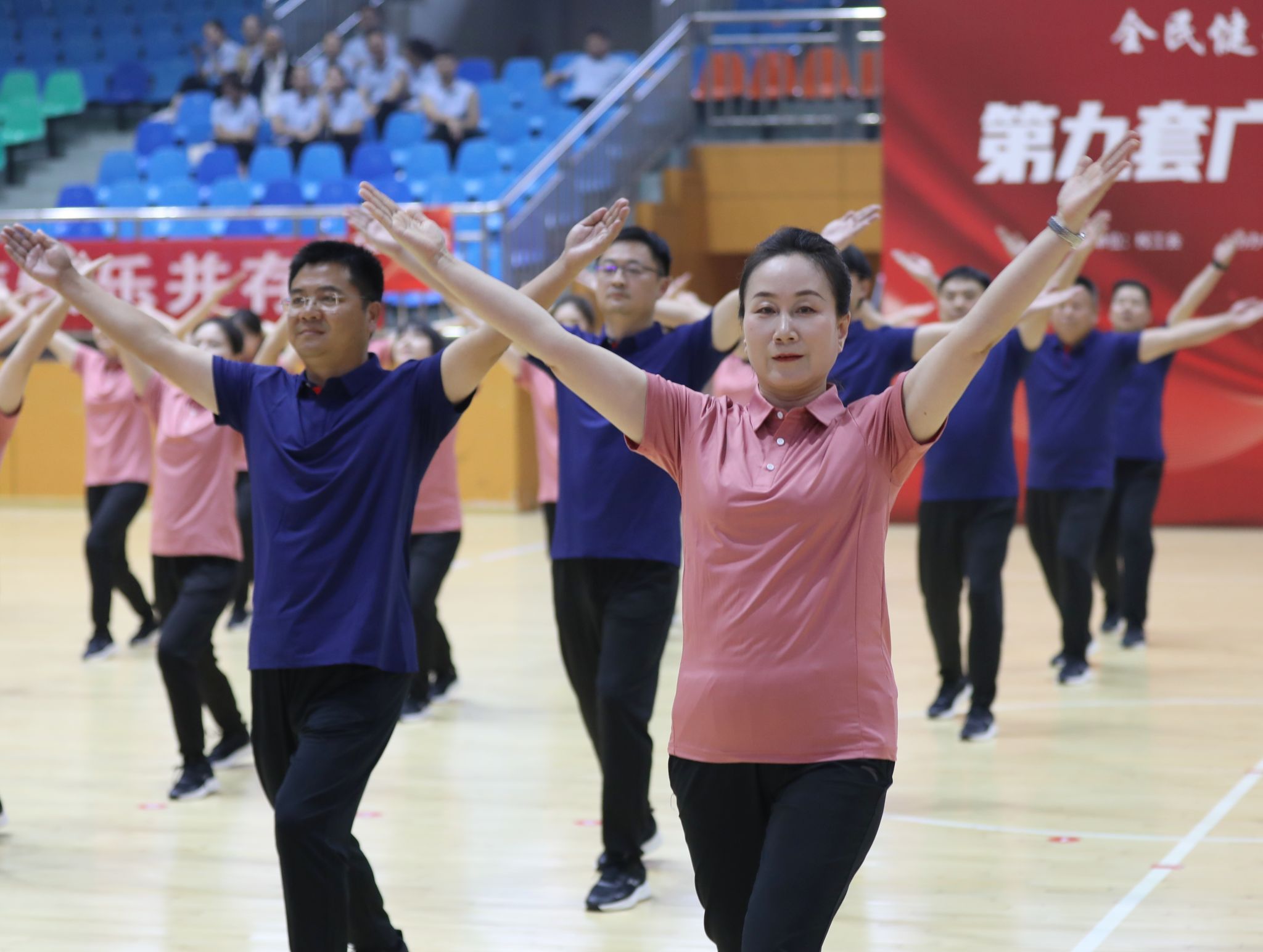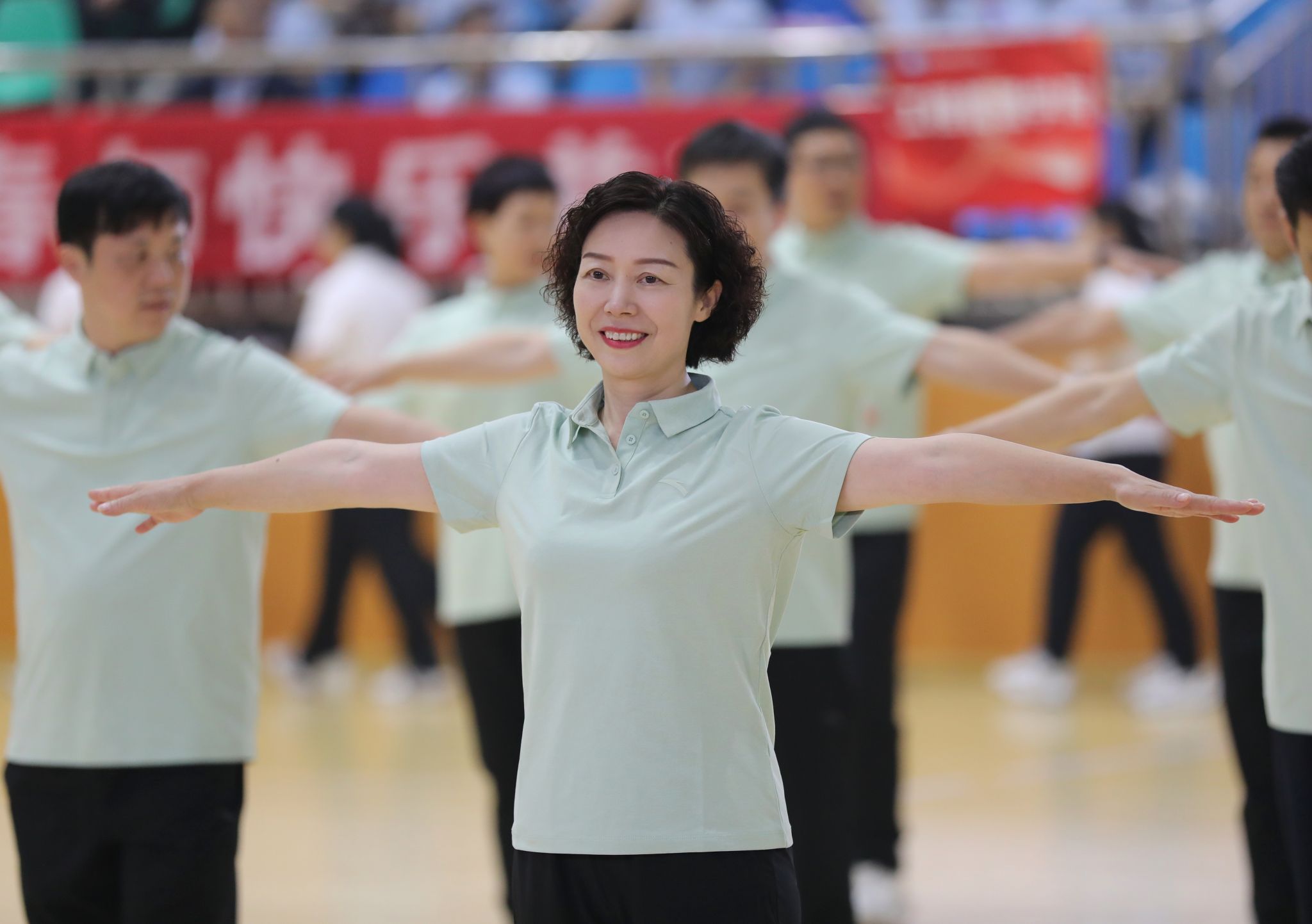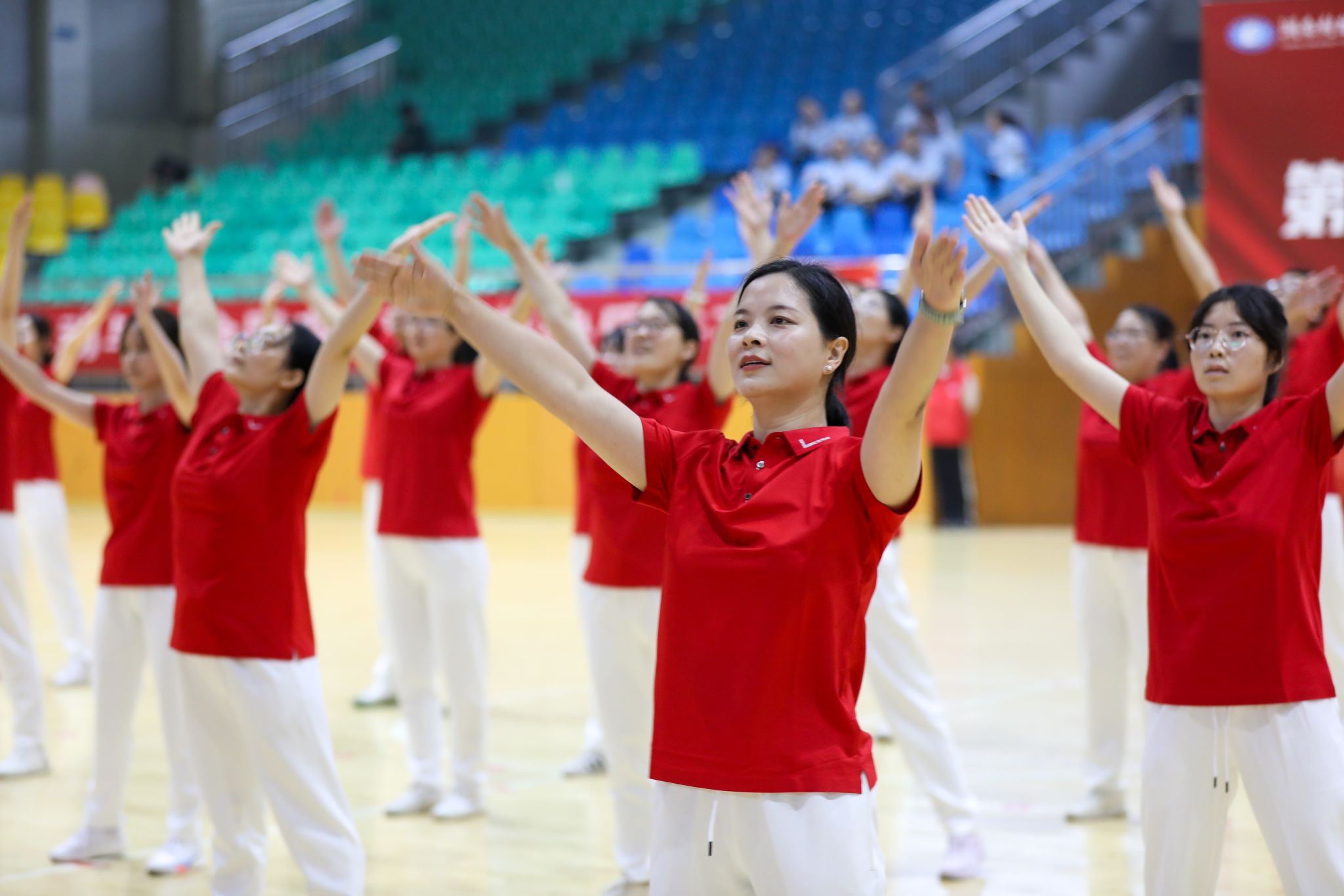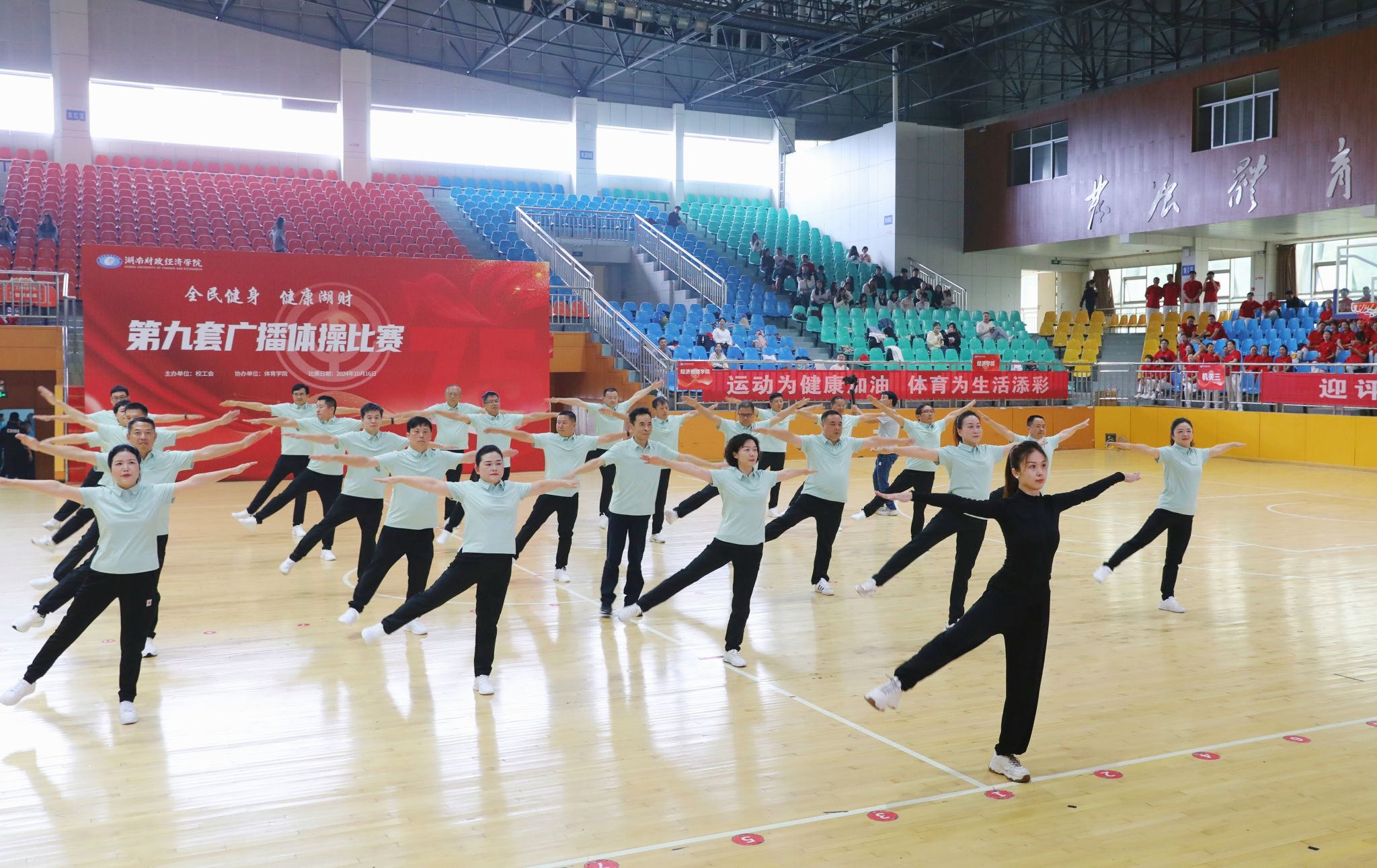 (本网讯)10月16日下午,学校主校区体育馆里掌声不断,热闹非凡,“全民健身 健康湖财”2024年学校教职工第九套广播体操比赛在此举行。校党委书记杨兰英,党委副书记苏玲,纪委书记李雪山,党委委员、宣传部、统战部部长文炳勋出席活动并参与表演。