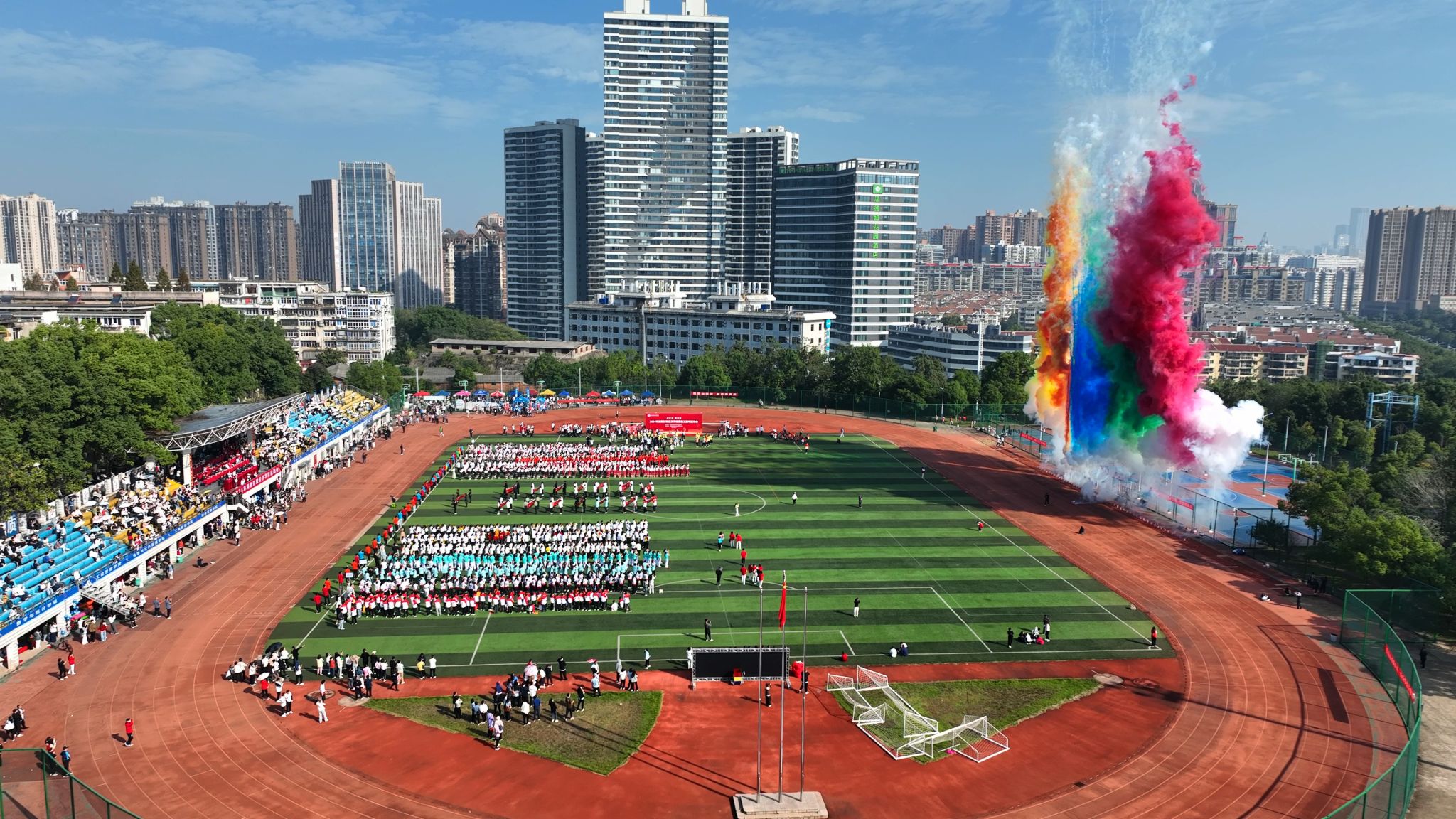 (本网讯)10月25日至26日,best365官网运动会在主校区田径场举行,近三千名师生在体育大舞台上尽展健康自信之美。