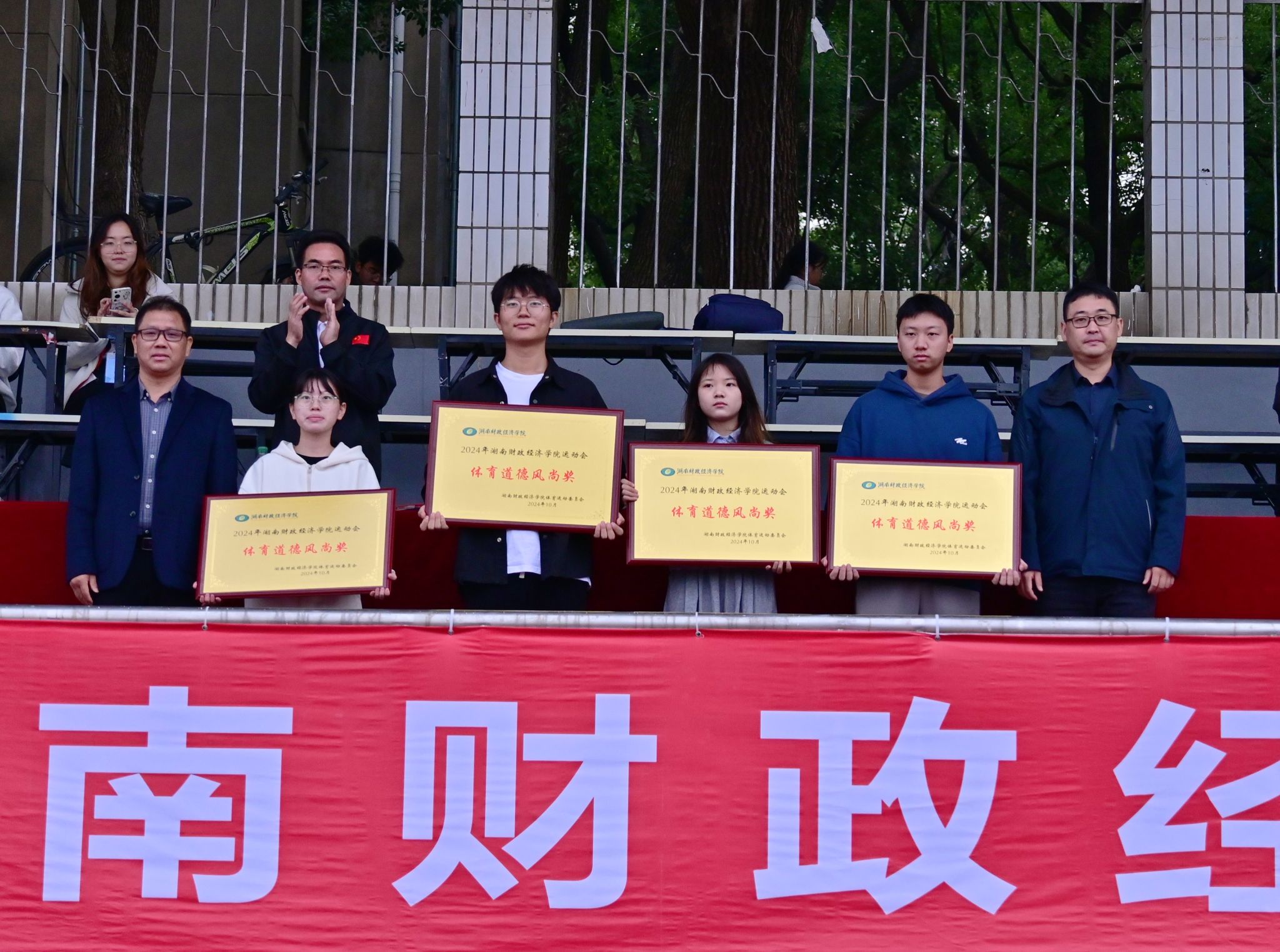 据了解,本次运动会共有600余名运动员参与到传统田径、趣味比赛等26个项目竞技中。在两天的比赛中,捷报频传,女子1500M、女子跳远、男子跳高等项目再创新纪录。闭幕式上,团体总分榜正式出炉,信息技术与管理学院、财政金融学院、经济地理学院、会计学院、工商管理学院、工程管理学院荣获团体总分前6名,马克思主义学院、数学与统计学院、体育学院、法学与公共管理学院荣获体育道德风尚奖,颁奖嘉宾为获奖代表团现场颁奖。