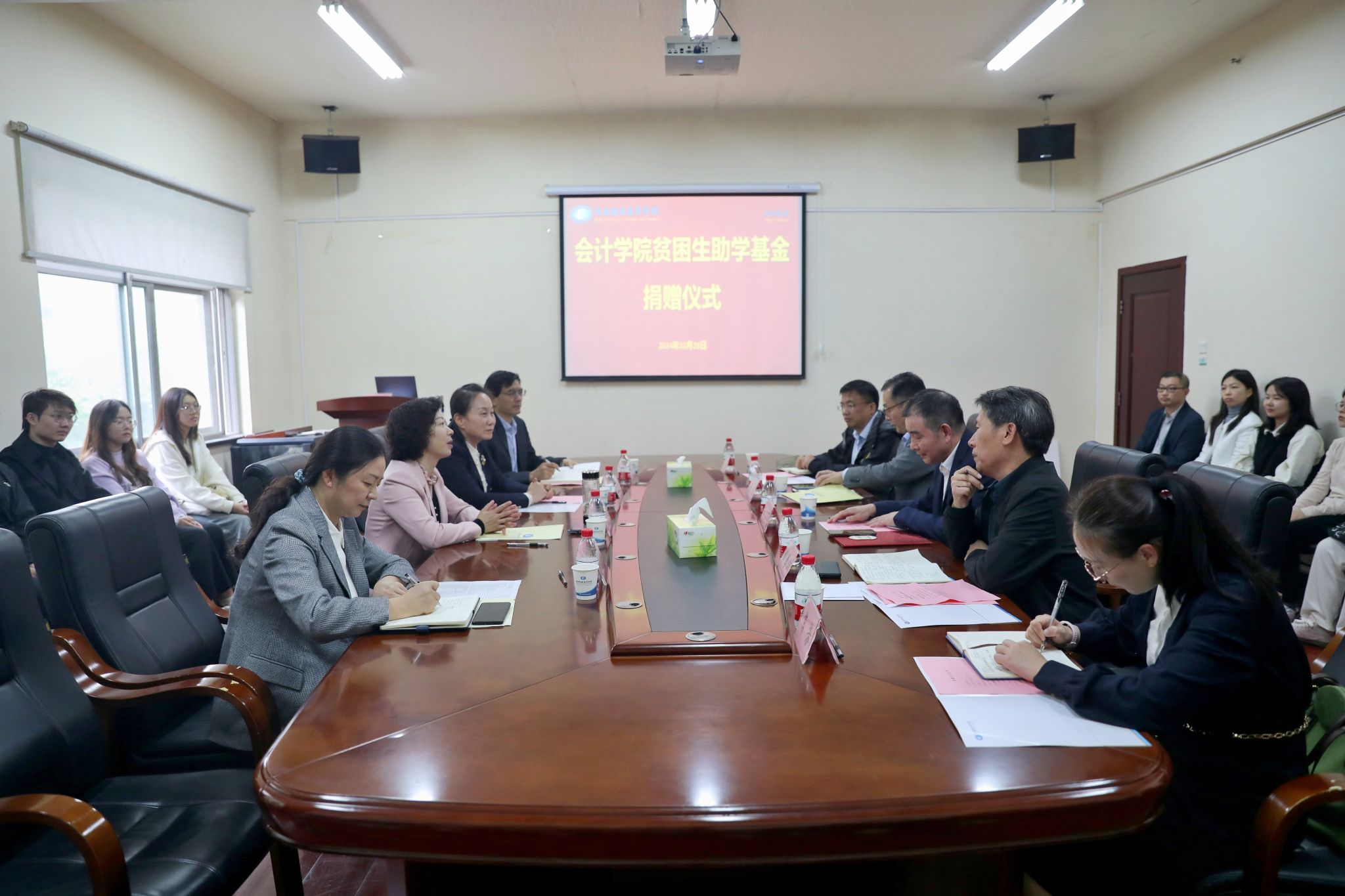 校党委书记杨兰英、党委副书记苏玲,财务处、就业创业中心(校友联络中心)主要负责人,会计学院领导班子成员及教师代表出席捐赠仪式。