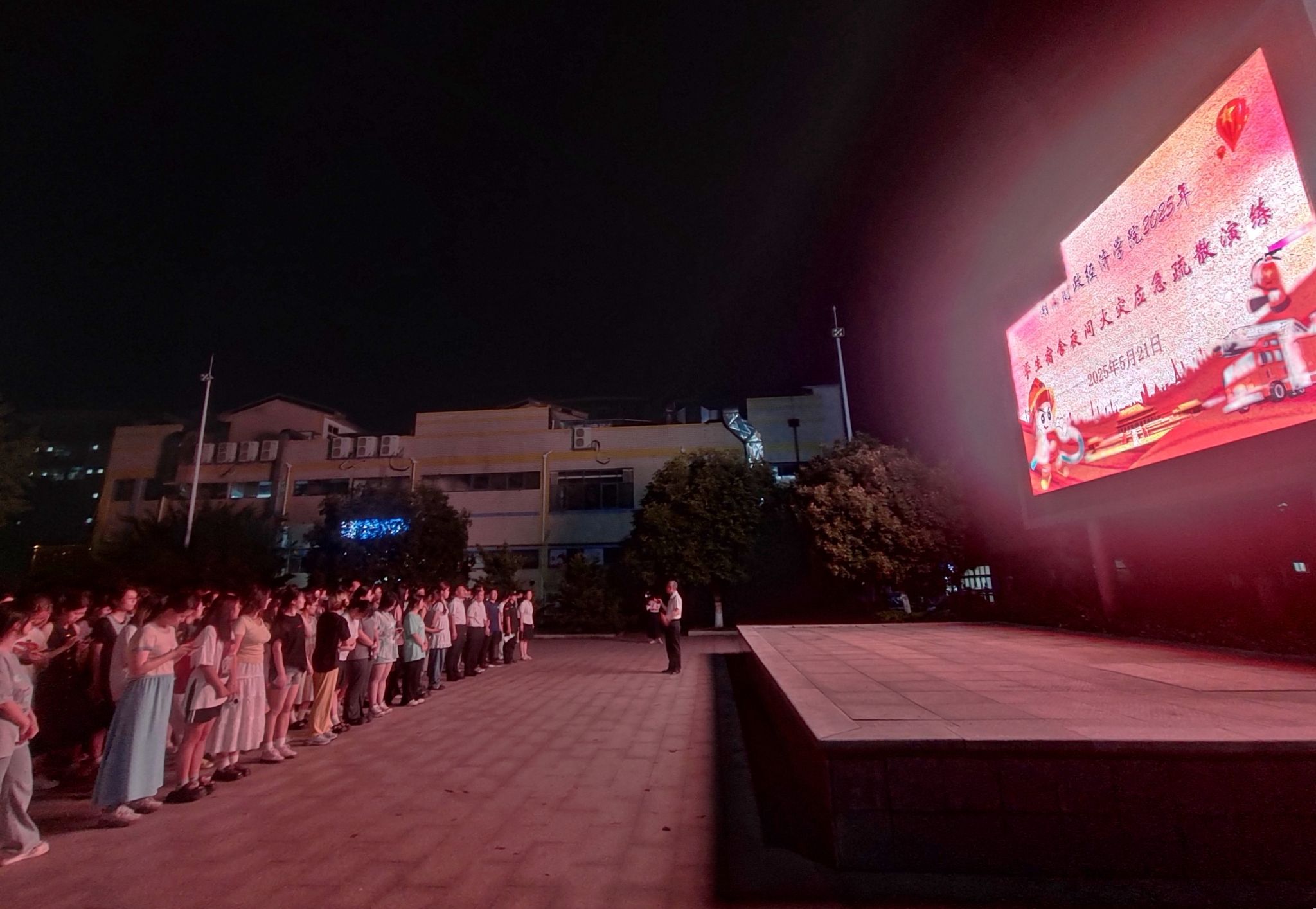 (本网讯)为强化全员消防安全意识,提升师生初起火灾自救、人员疏散处置及岗位协同配合能力,5月21日晚,best365官网在学生宿舍3栋组织开展夜间火灾应急疏散演练。副校长刘钟理担任演练总指挥,相关职能部门、二级学院负责人,宿舍思政辅导员、班级辅导员,以及物业公司、保安队、学生110护卫队协同行动,该栋近1700名师生参与其中。