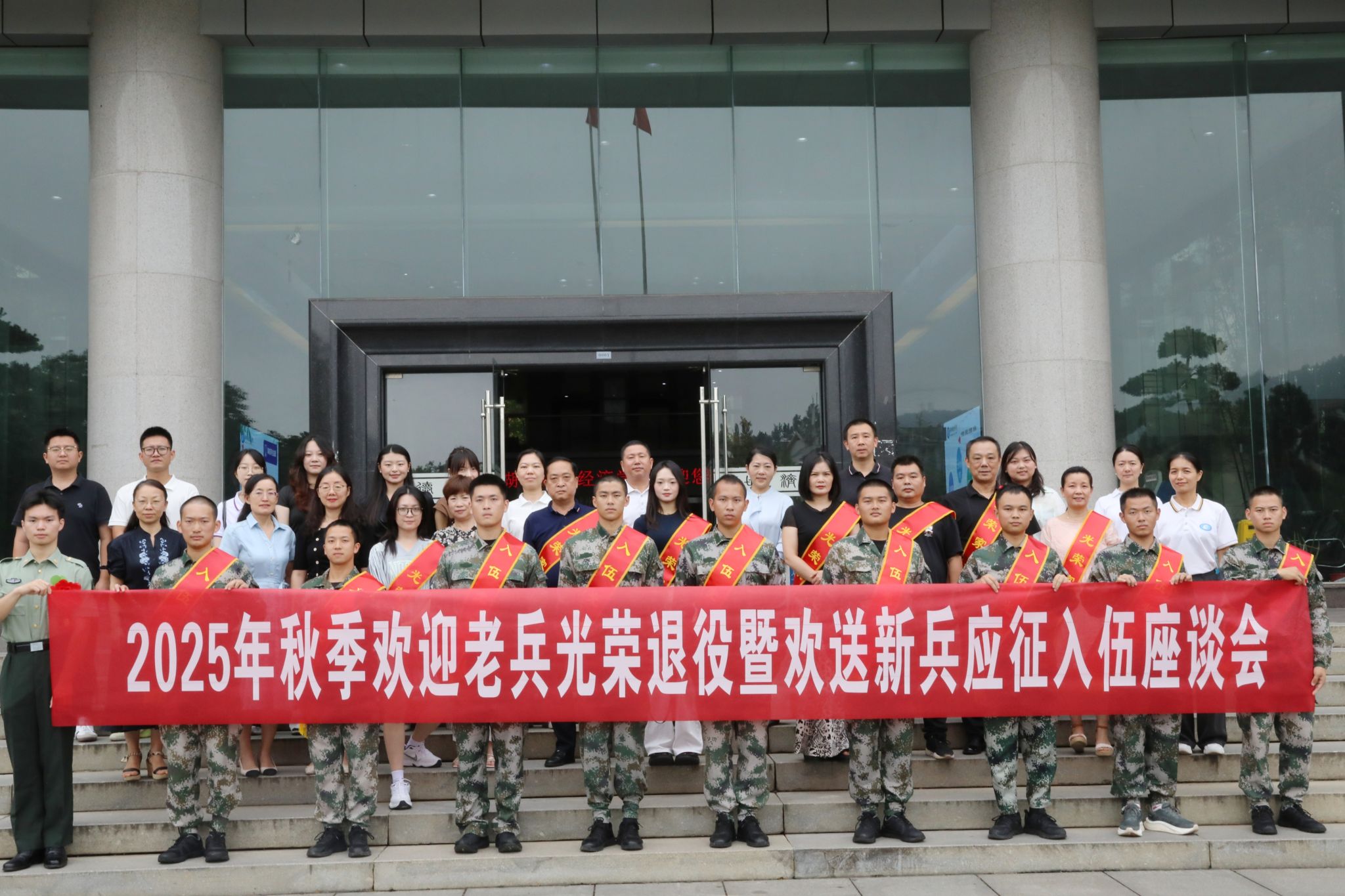座谈交流环节,退役学生呙鹏分享部队成长经历,希望新兵珍惜军旅磨砺、相信自我成长、坚持终身学习;新兵们表达了对学校、老师的感谢,以及在军营建功立业、将个人理想融入强国强军事业的坚定决心;教师代表邓玉平勉励同学们“把湖财精神带进军营,把军人作风带回校园”,在部队锤炼意志品质,返校后续写使命担当。