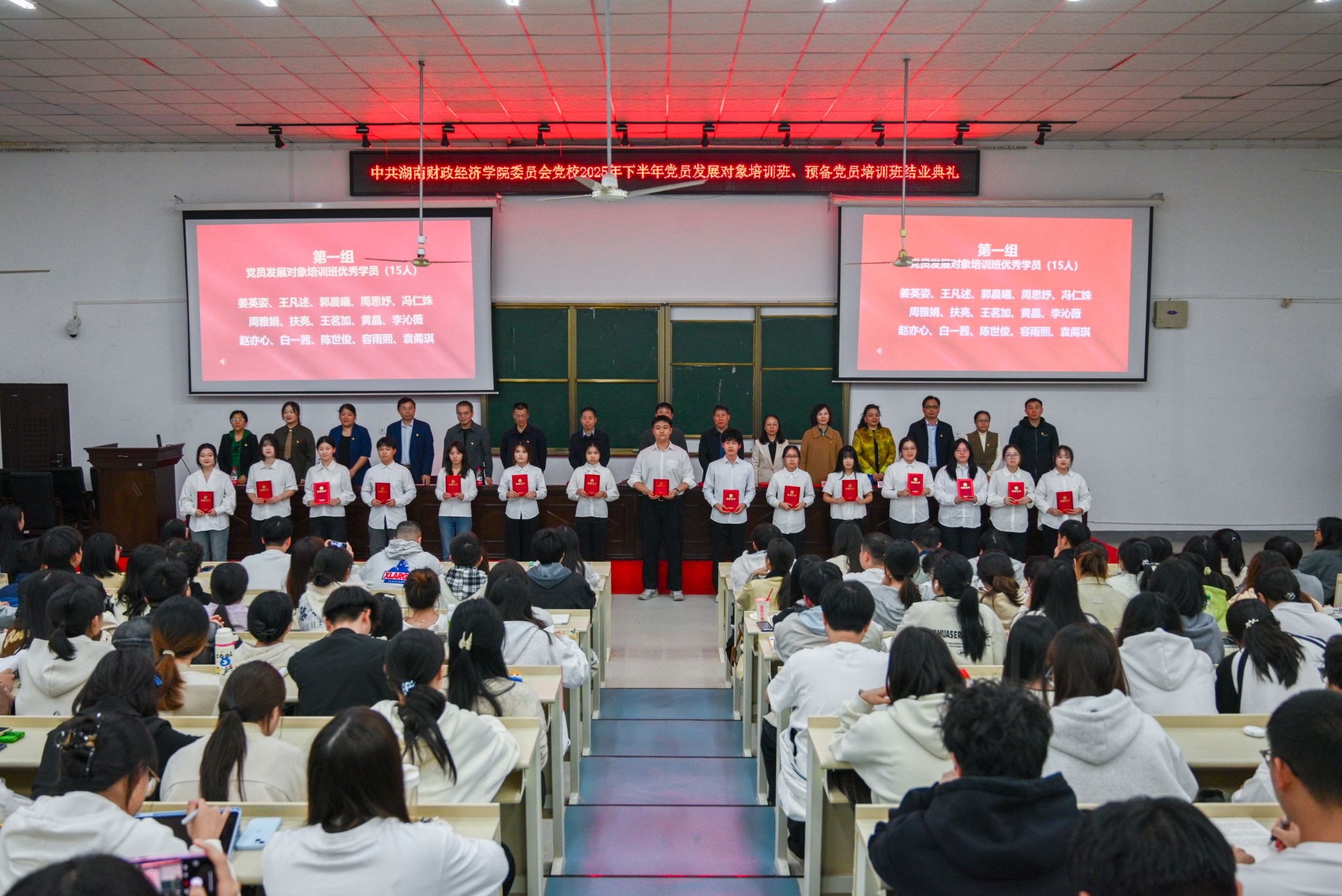 结业典礼上,党校对优秀学员、优秀学员干部进行了表彰;体育学院教师彭莹璐、经济地理学院学生周景琪作为学员代表发言。