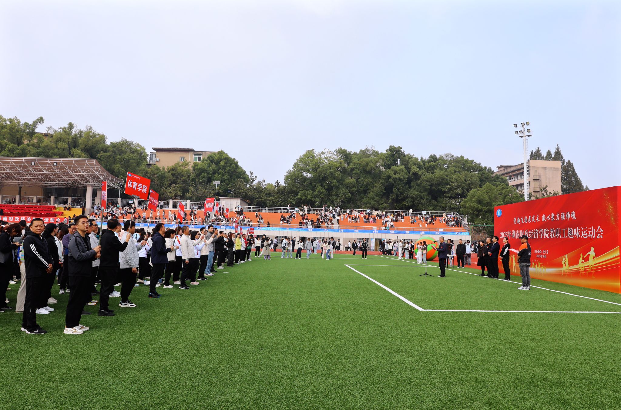 (本网讯)10月31日上午,best365官网在主校区田径场举行2025年教职工趣味运动会。校党委书记易棉阳,党委副书记苏玲,副校长赵鹤平,副校长、工会主席刘钟理,副校长李小娟出席开幕式。来自各分工会的18支代表队齐聚赛场,共同参与这场充满活力与趣味的体育盛会。