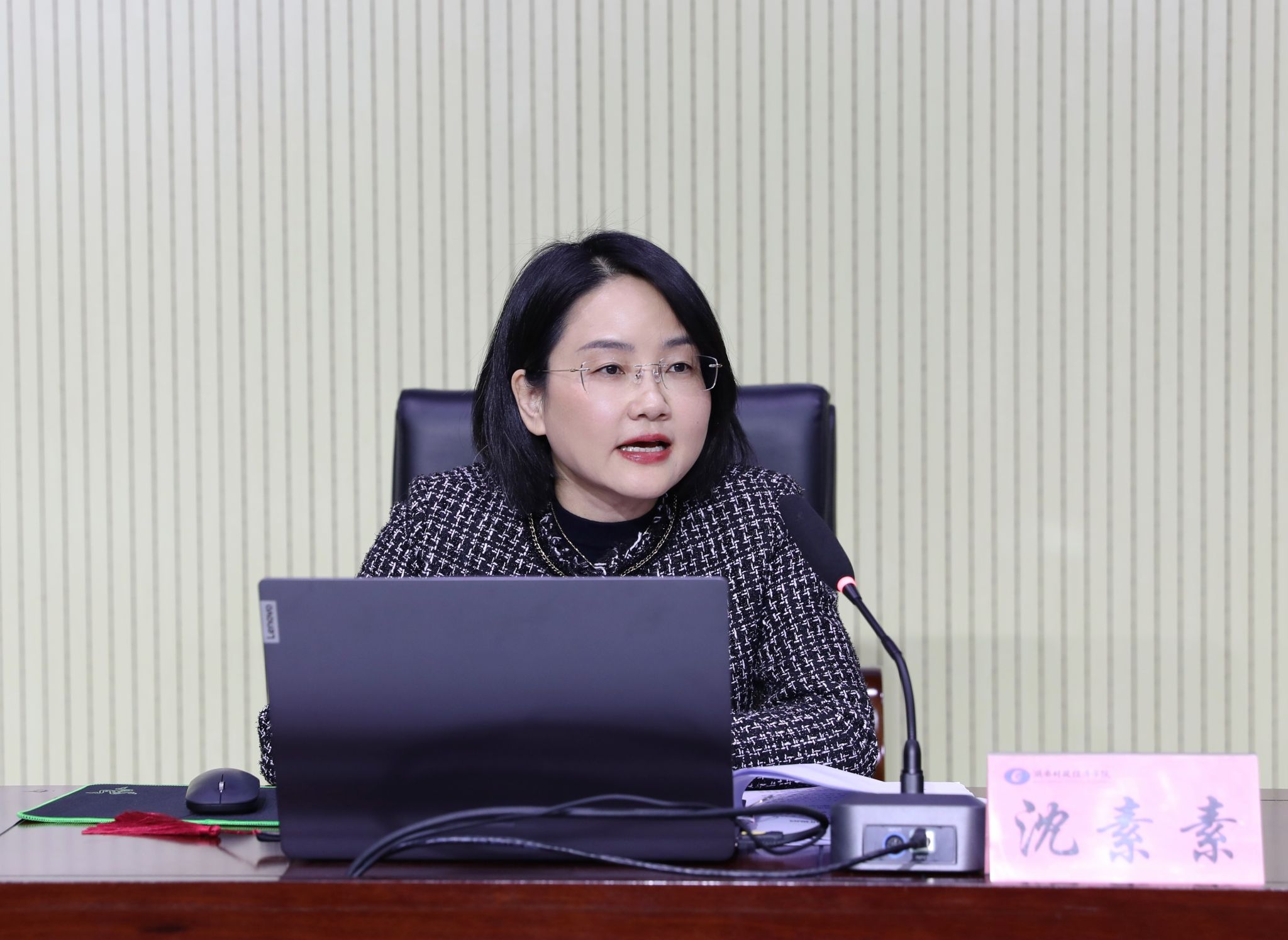 报告会上,沈素素从全会基本情况和《建议》起草过程、准确把握“十五五”时期在基本实现社会主义现代化进程中的重要地位、深刻领会“十五五”时期经济社会发展的指导方针和主要目标、全面理解“十五五”时期经济社会发展的战略任务和重大举措以及坚持和加强党的全面领导、凝聚起推进中国式现代化的磅礴力量等方面,结合高校职责使命和学校发展实际,对党的二十届四中全会精神展开系统宣讲和深度阐释。她强调,要把学习全会精神与贯彻习近平总书记考察湖南重要讲话和指示精神结合起来,全面把握好全会关于教育改革发展的新部署新要求,牢牢把握社会主义办学方向,全面落实立德树人根本任务,弘扬教育家精神,建设高素质专业化教师队伍,调整优化学科专业布局,积极发挥财经人才优势,聚焦党和国家战略需求,提高智库建设水平,培养深厚家国情怀的财经人才。