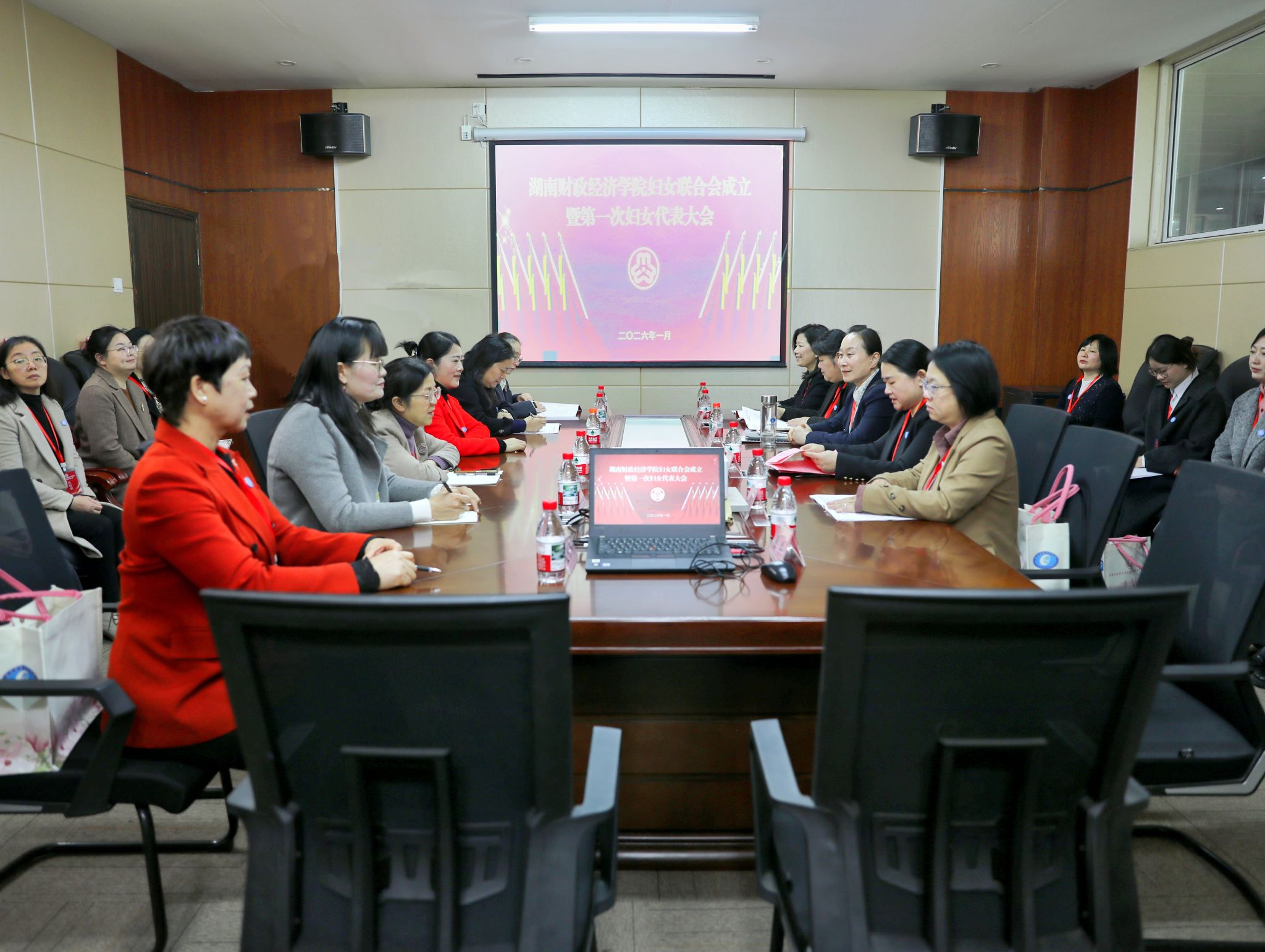 (本网讯)1月16日上午,学校妇女联合会成立暨第一次妇女代表大会在图书馆学术报告厅召开。湖南省妇联党组书记、主席杨兰英,校党委书记易棉阳出席会议并讲话。全体在校校领导,中层正职干部,100余名女性教职工、学生代表以及列席代表参加会议。副校长李小娟主持会议。