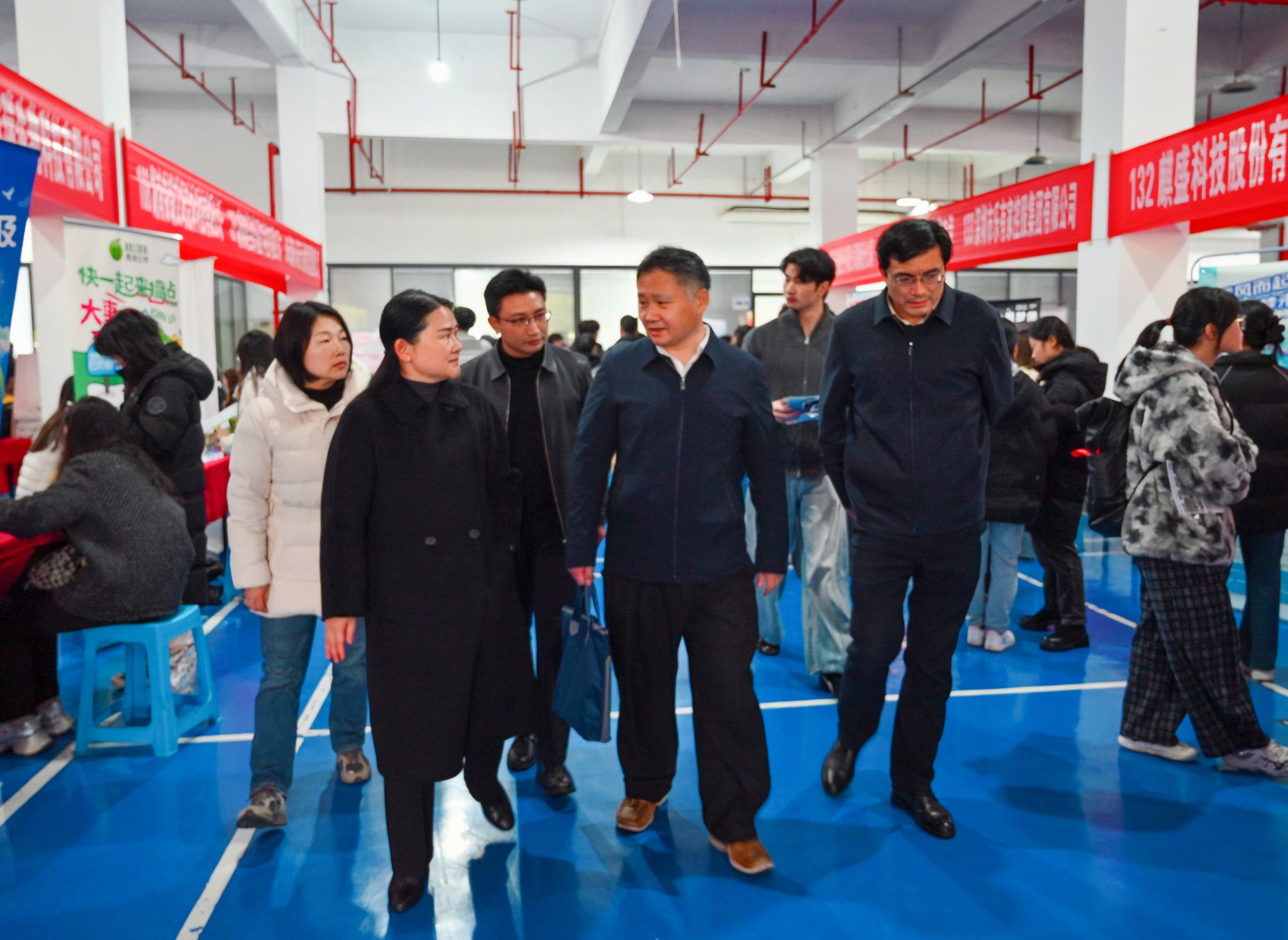省教育厅学生处副处长李希敏在副校长李小娟陪同下,走访招聘展位,与用人单位代表、毕业生深入交流,听取用人单位对学校人才培养的意见建议,询问毕业生的求职进展与职业规划,勉励毕业生树立正确就业观,主动把握机遇,以扎实专业能力迎接职场挑战。