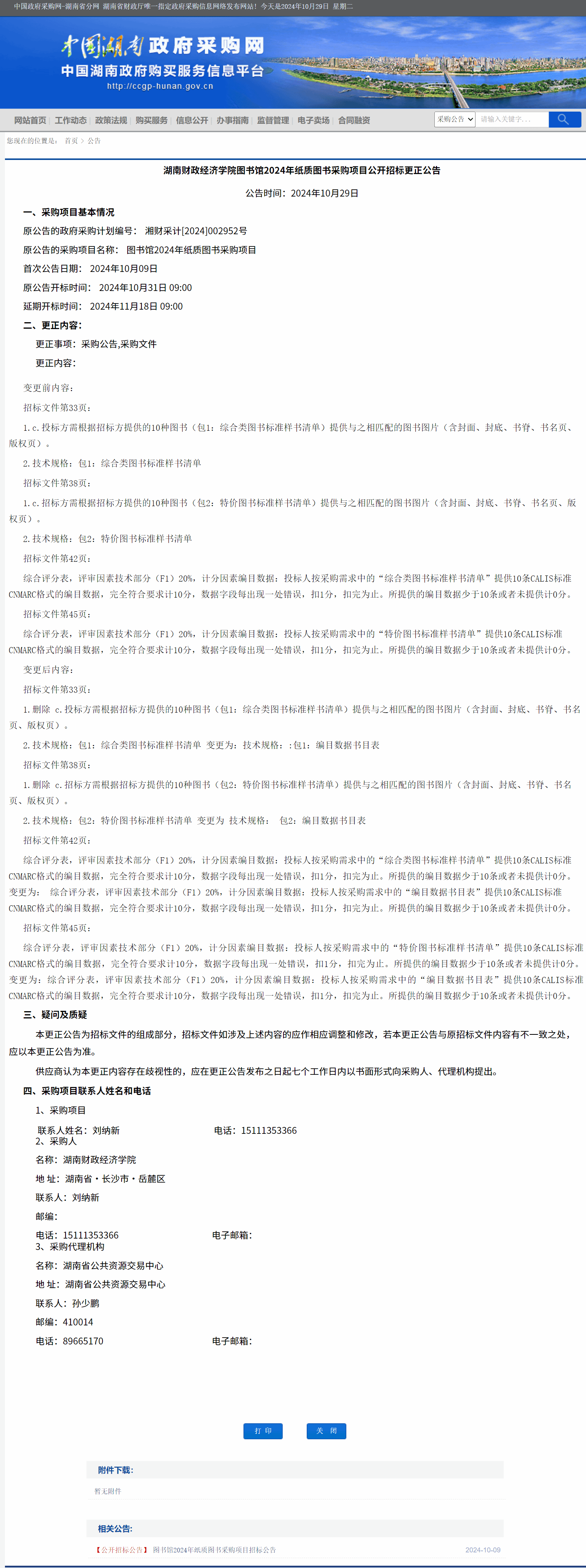 湖南省政府采购网:best365中国官方网站图书馆2024年纸质图书采购项目公开招标更正公告