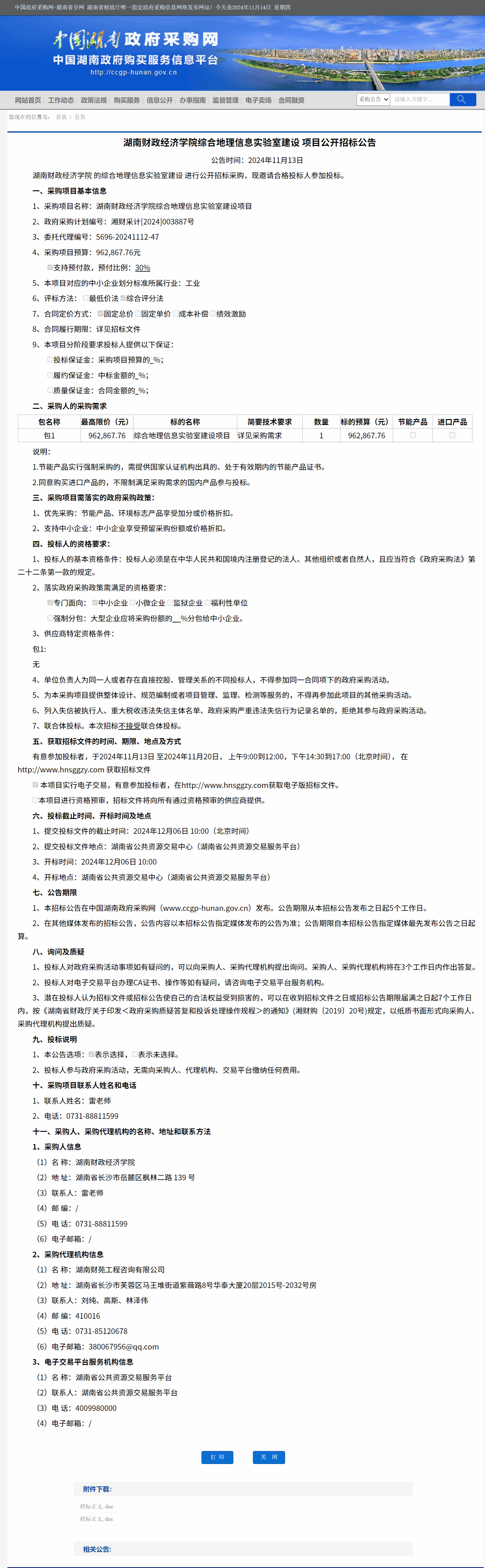 湖南省政府采购网:best365中国官方网站综合地理信息实验室建设项目公开招标公告