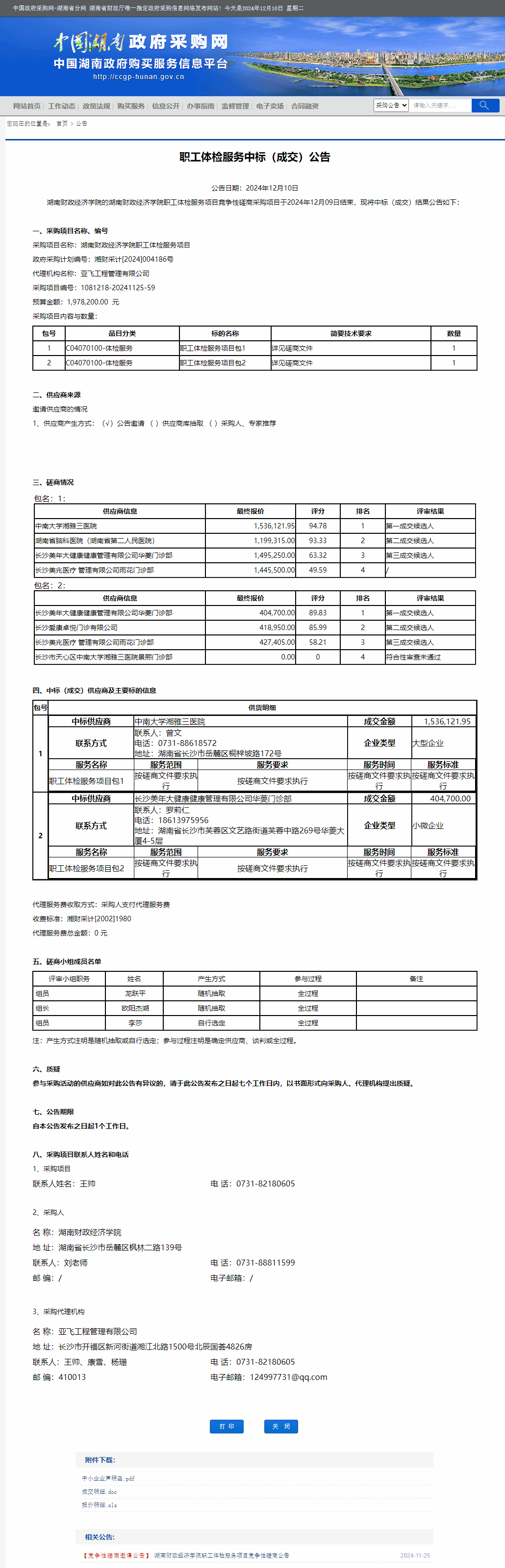 湖南省政府采购网:best365中国官方网站职工体检服务中标(成交)公告