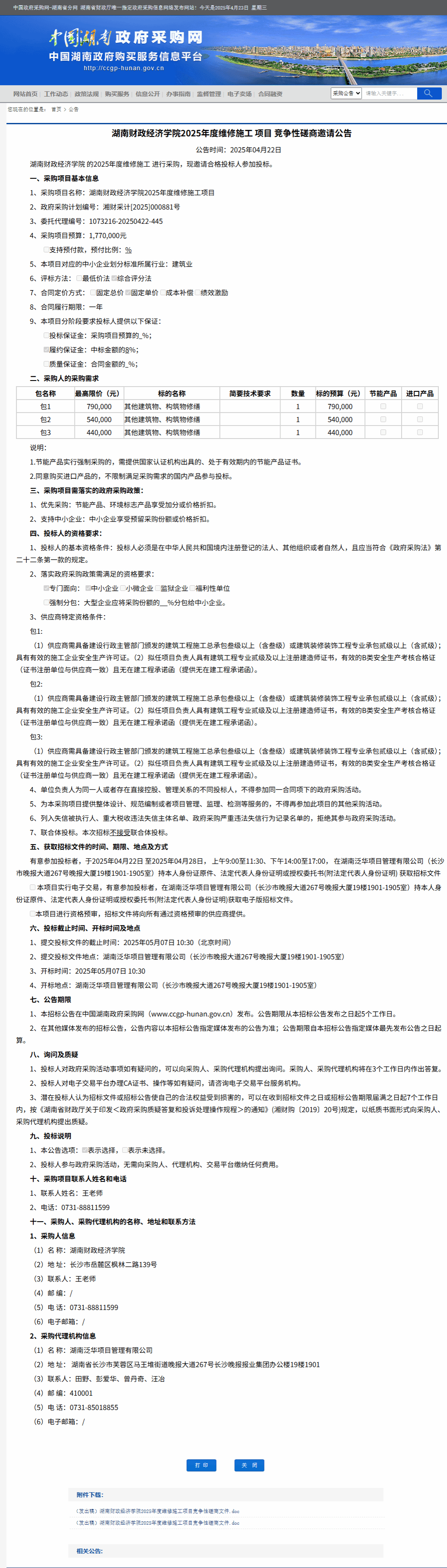 湖南省政府采购网:best365中国官方网站2025年度维修施工项目竞争性磋商邀请公告