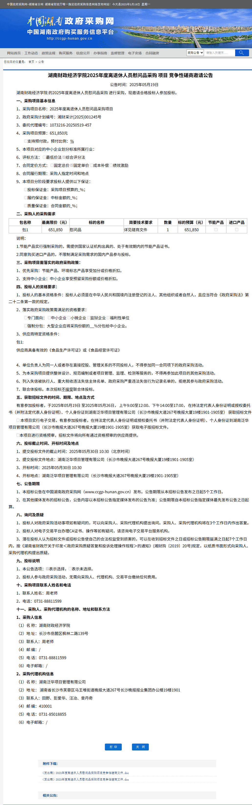 湖南省政府采购网:best365中国官方网站2025年度离退休人员慰问品采购项目竞争性磋商邀请公告