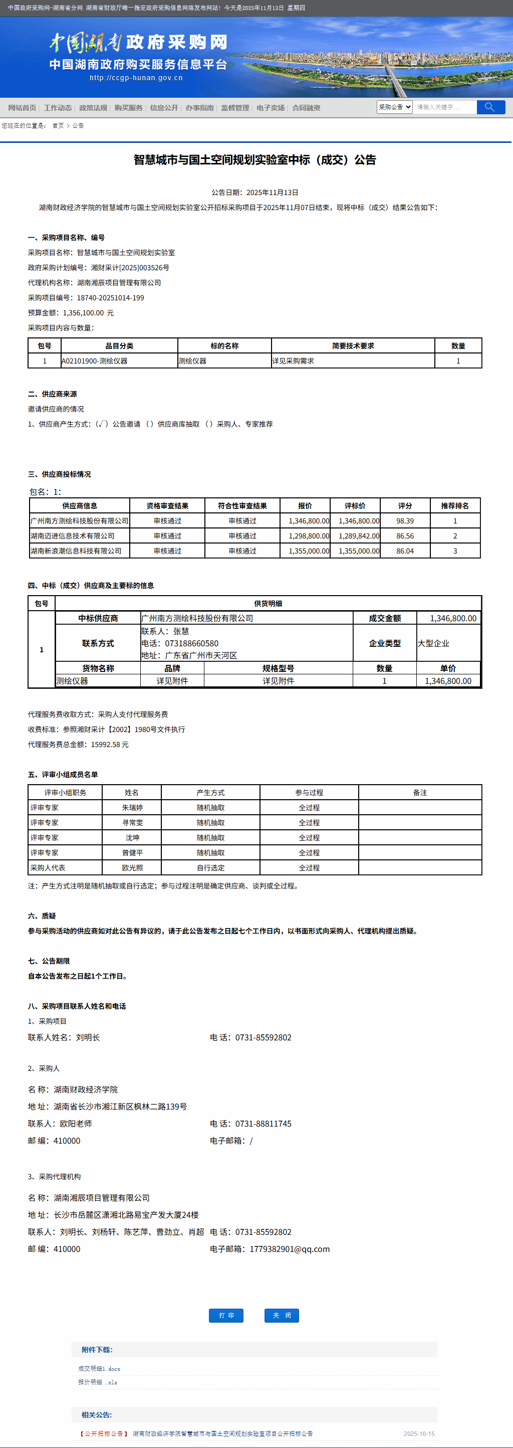 湖南省政府采购网:best365中国官方网站智慧城市与国土空间规划实验室中标(成交)公告