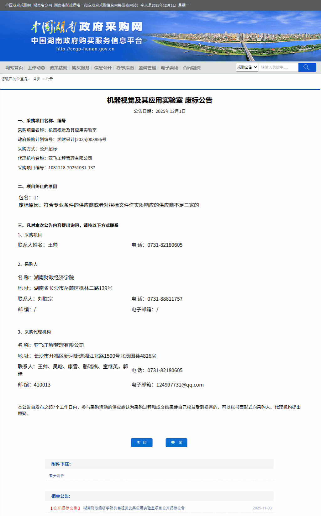 湖南省政府采购网:best365中国官方网站机器视觉及其应用实验室废标公告