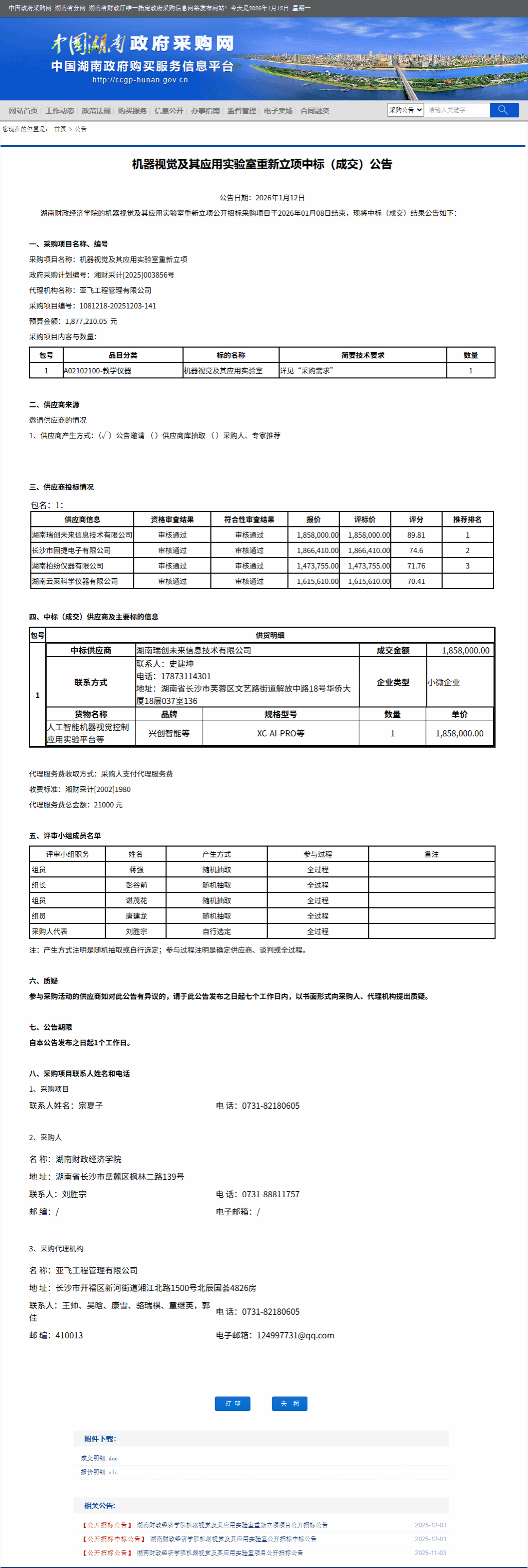 湖南省政府采购网:best365中国官方网站机器视觉及其应用实验室重新立项中标(成交)公告