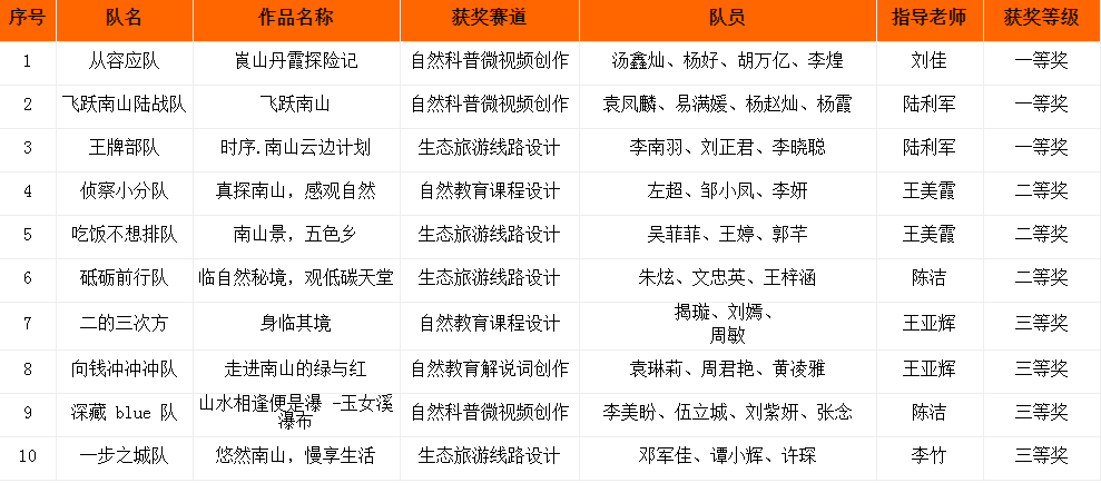 本届大赛由湖南省教育厅主办,湖南省旅游学会旅游教育专业委员会举办、中南林业科技大学承办、湖南南山国家公园管理局协办。大赛以“走进国家公园,感受国之大者:南山国家公园生态旅游创意策划”为主题,设自然教育课程设计、自然教育解说词创作、自然科普微视频创作、生态旅游线路设计4个赛道。经各参赛高校推荐、组委会资格审查,共有31所本科院校、382支队伍,1600余名师生参加复赛,最终72支队伍入围全省总决赛。(刘正君)