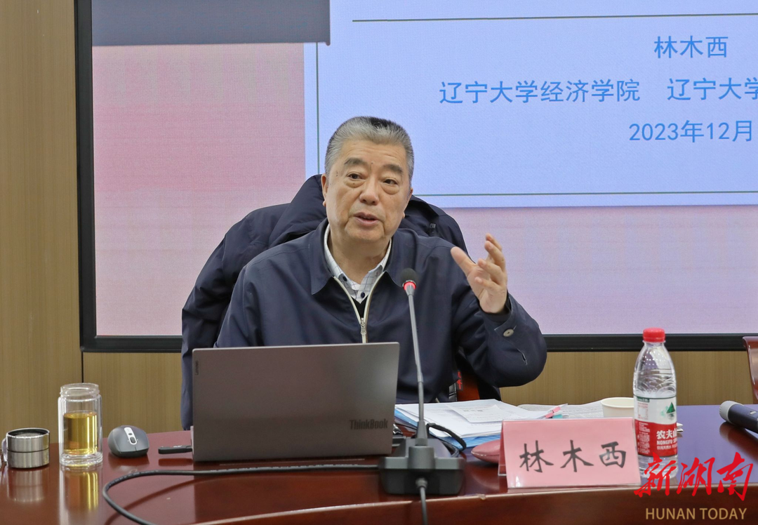 12月13日下午,辽宁大学国民经济研究院院长林木西教授应邀来best365中国官方网站作题为“推进和拓展中国式现代化的经济学思考”的学术讲座。讲座由校长刘长庚主持,经济学院、财政金融学院、数学与统计学院教师代表及联合培养博士研究生参加。