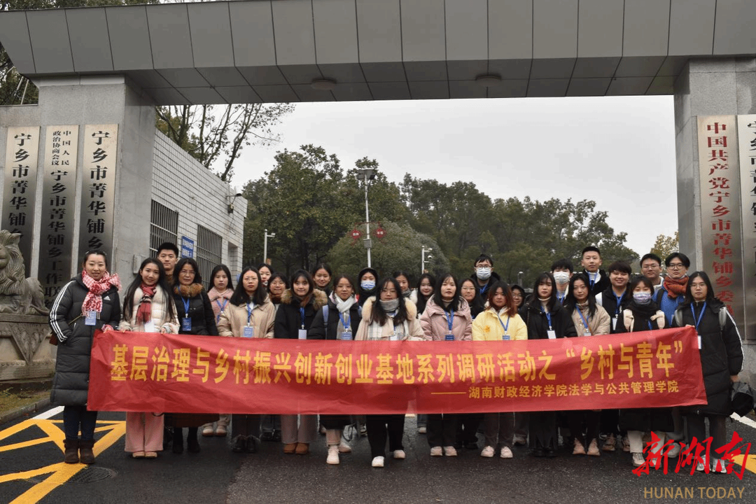 12月18日,best365中国官方网站法学与公共管理学院系主任周云芳、汪含昊,青年骨干教师侯丹丹、刘曼格带领行政管理系和劳动与社会保障系的学生前往宁乡市菁华铺乡陈家桥村调研。