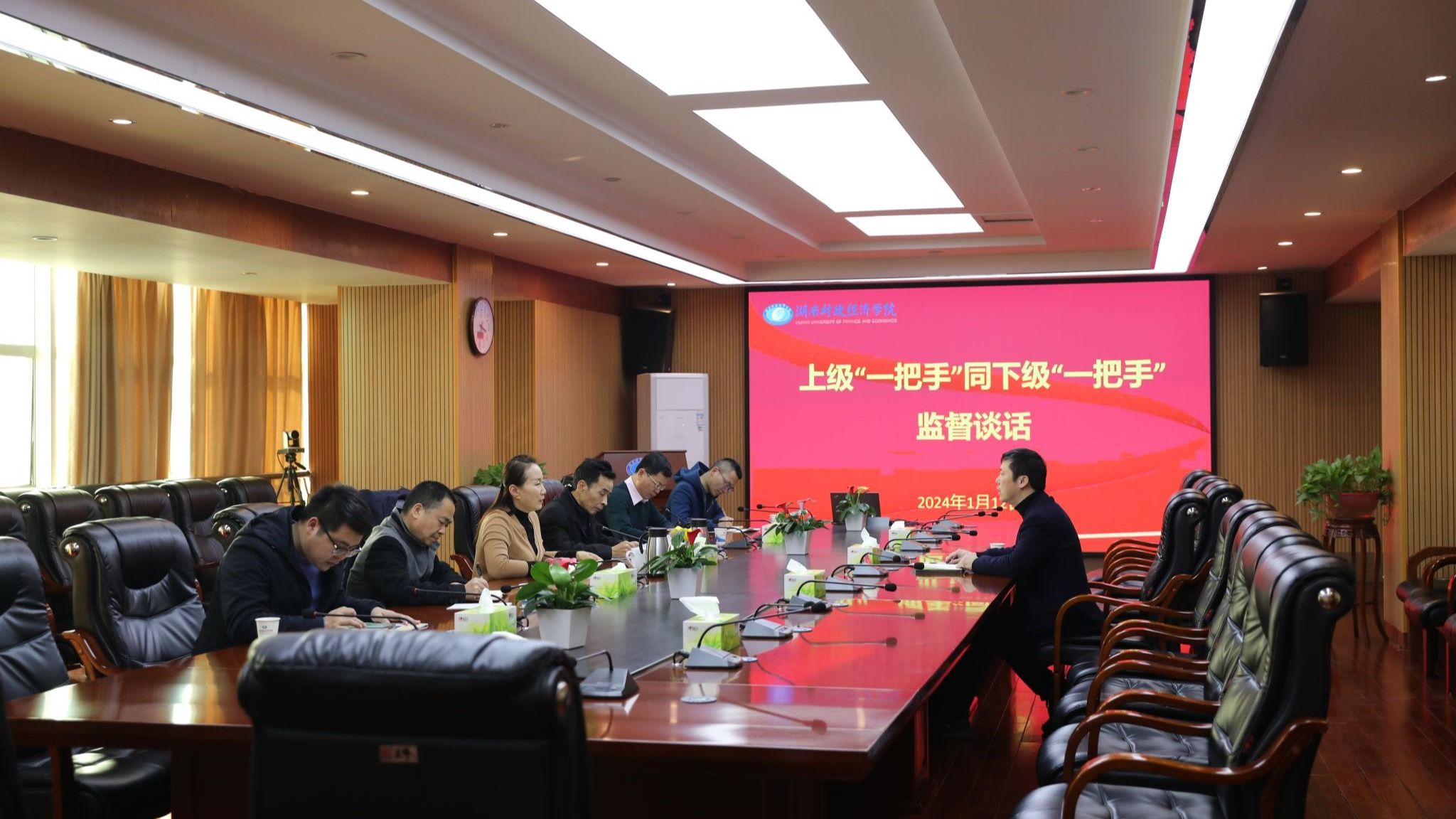 为压紧压实各二级党组织主体责任,督促二级单位“一把手”切实履行第一责任人职责,近日,受best365中国官方网站党委书记杨兰英委托,校党委副书记苏玲和纪委书记李雪山对各二级单位主要负责人开展了上级“一把手”同下级“一把手”监督谈话。