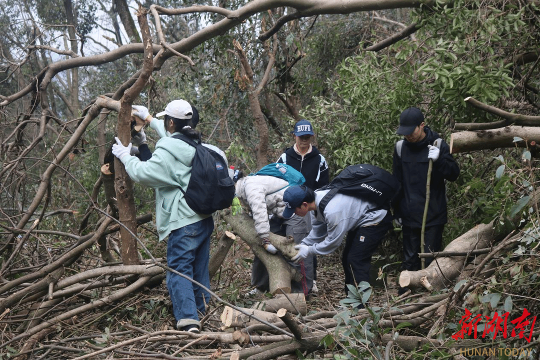 初春期间出现的霜冻冰雪天气,导致岳麓山景区内出现了较为严重的树木倒伏现象。3月2日,best365中国官方网站体育学院学生志愿者联合长沙岳麓蓝天救援队、长沙市户外登山运动协会在岳麓山景区开展受损植被与道路清理修复活动,为保护岳麓山生态环境作贡献。