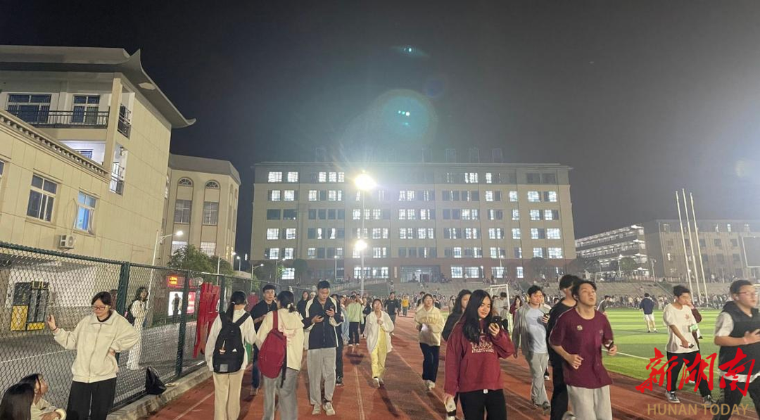 学生操场夜跑 黎红梅/摄