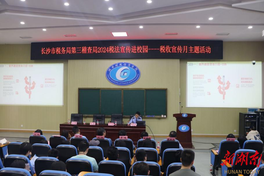 国家税务总局长沙市税务局第三稽查局相关负责人围绕“税务稽查现状介绍及常见税务风险分析”主题,从税务稽查现状分析、常见税务风险分析、税务人员职业分析三个方面为在场师生讲述了一堂内容丰富的税收宣传课程。(赵怡 黎自强)