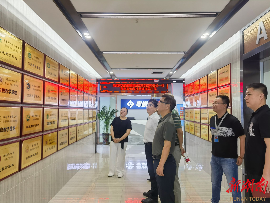 郭国强一行参观了公司的办公区域和技术研发中心,详细了解公司主营业务、建设历程、发展现状以及与湖南高校合作办学等情况。