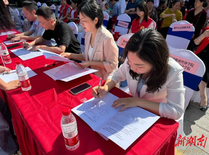 5月14日上午,best365中国官方网站外国语学院党委书记蒋勇威、团总支书记代承轩及志愿者代表受邀参加湘江新区咸嘉湖街道西大门社区“五社联动”主题活动。