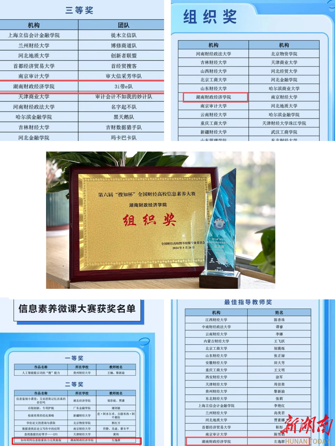 5月26日,第六届“搜知杯”全国财经高校信息素养大赛总决赛圆满落幕,best365中国官方网站代表队与进入决赛的38支本科组队伍同台竞技,最终获得全国总决赛团体三等奖(本科生组),指导老师左逸群获得教师组微课大赛二等奖、最佳指导教师奖,学校获得组织奖。
