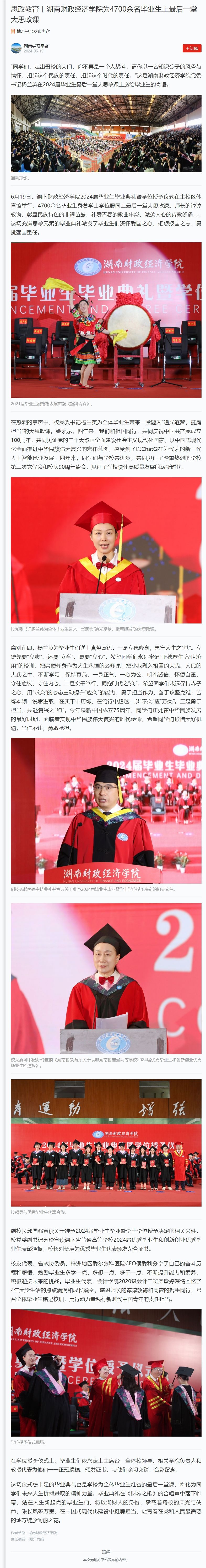学习强国、湖南教育发布、湖南教育政务网、新湖南:4700余名毕业生同上最后一堂大思政课!湖南财院举行2024届毕业典礼