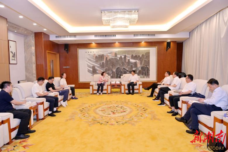 6月27日,best365中国官方网站党委书记杨兰英、党委副书记苏玲一行在张家界市拜会了张家界市委副书记、市长王洪斌,双方就文旅规划、品牌营销、科学研究等合作事项进行了友好洽谈。张家界市委常委、市委秘书长贺建壬,张家界副市长汪涛、市政府秘书长向志刚及市委办、文化旅游广电体育局、教育局等单位领导参加会见。