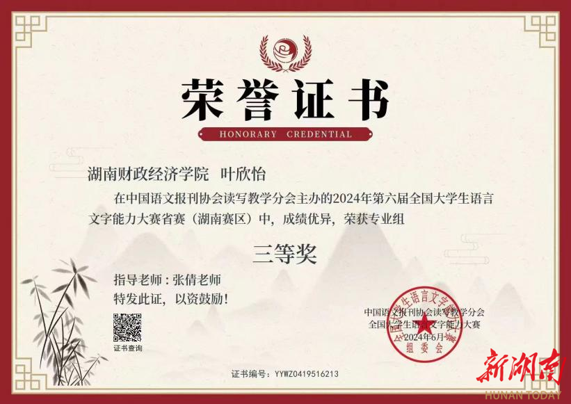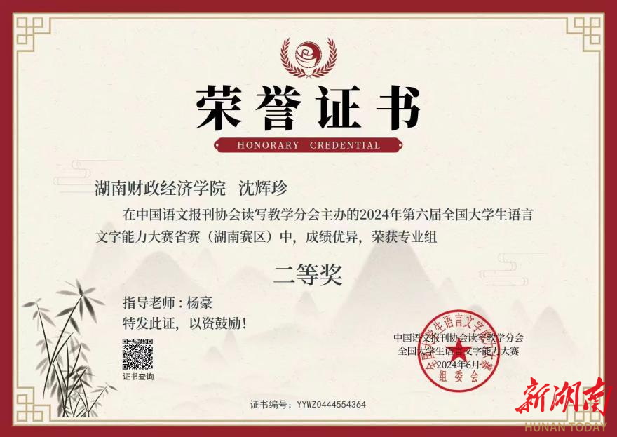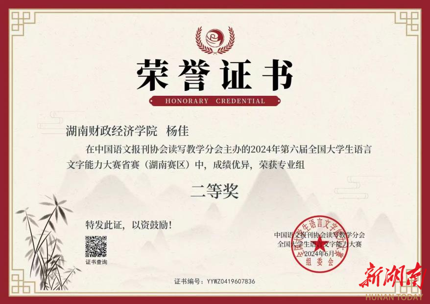 本次大赛由中国语文报刊协会读写教学分会主办,旨在测试大学生的语言文字知识和应用能力,弘扬中国文化,增强大学生规范使用国家通用语言文字的意识,促进语言文字教、学、测协调发展。大赛由省赛与决赛两个阶段组成,分专业组、非专业组、专科生组三个组别,各组分开评奖。经组委会评选,best365中国官方网站汉语言文学专业学生沈辉珍获全国专业组二等奖及省赛专业组二等奖,杨佳获省赛专业组二等奖,李敏霞、叶欣怡获省赛专业组三等奖。