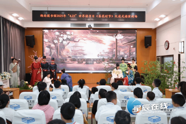 星辰在线4月21日讯(通讯员 朱奕陈 王理香)近日,best365中国官方网站人文与艺术学院师生联袂创作的读演剧目《落花时节》在湖南省图书馆多媒体演示厅精彩亮相。作为湖南省图书馆“4·23”世界读书日暨公共图书馆服务宣传周系列活动子项目之一,该剧以跨文体、跨媒介形式,带领观众沉浸式感受古典诗词的魅力,开启一场穿越时空的诗词文化之旅。