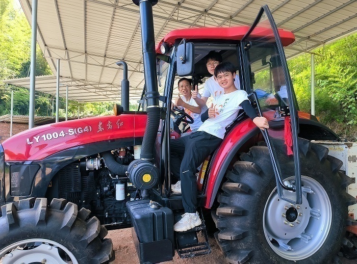 调研队成员与农机合影