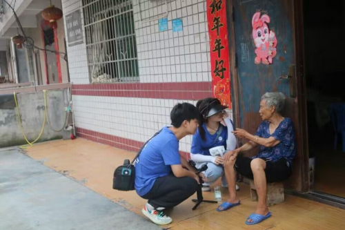 与此同时,志愿者们还充当了耐心的倾听与交谈者。由于身体或心理等其他因素,留守老人、残障人士等弱势群体缺少社会交流的机会,长时间的社交空缺易造成其少言、敏感甚至抑郁的心理健康隐患。志愿者的到来为其提供了表达与倾诉的窗口,志愿者们传达的热情与善意让他们敞开心扉,大到国家政策小到邻里家常与志愿者们一一讲述。志愿者与村民们的热切交谈,不仅舒缓了老人们的孤独困乏,给他们的生活增加一点新鲜的色彩和活力,同时,也为志愿者的社会调研任务提供了许多有用的信息。