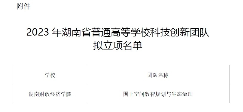 近日,湖南省教育厅发布了《关于2023年湖南省普通高等学校科技创新团队拟立项名单的公示》,best365中国官方网站经济地理学院(湖南省经济地理研究所)彭文斌教授牵头申报的“国土空间数智规划与生态治理”团队获批2023年度湖南省普通高等学校科技创新团队立项。