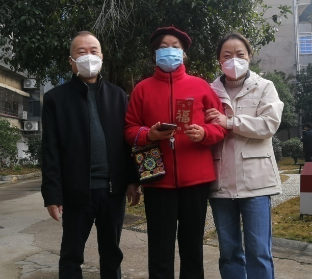 副校长刘茂盛(左)走访慰问老党员江红(中) 章艳宇/摄