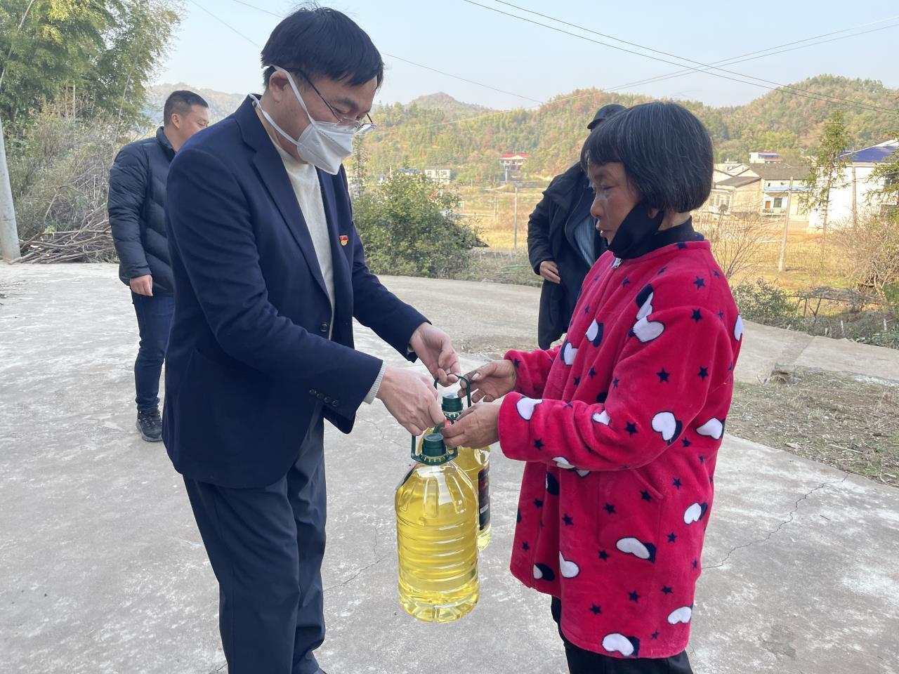 郭国强还带队走访慰问了困难户朱祥林、王琼斌,与他们进行交谈,询问他们的生活情况、身体健康状况、主要困难等,并送上了信息技术与管理学院教职工党员捐赠的4000余元慰问金和慰问品。(孙颂丰/文 邓滔 邓勇/图)
