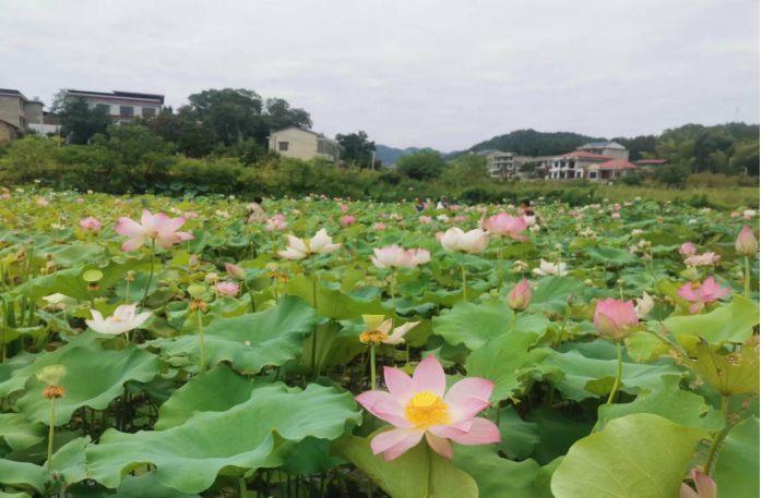 阳春三月,江口村千亩油菜花基地成了一片金色的海洋。荷香六月,百亩荷花基地呈现出“接天莲叶无穷碧”的美景。目前,黄沙洲万树桃花生态长廊正在规划建设之中。驻村工作队与村支两委统思想、强规划,采用“村支部+合作社+农户”模式,在全村有计划流转村民土地,引进种植大户,积极推进“百千万”乡村旅游景区建设,让绿水青山转化为“金山银山”。