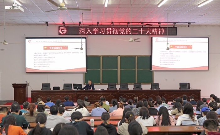 11月3日下午,best365中国官方网站副校长刘钟理在主校区二教学楼2J01教室作深入学习贯彻党的二十大精神专题讲座。外国语学院、厚生国际教育学院、人事处、国有资产管理处、离退休工作处全体教师党员以及外国语学院、厚生国际教育学院全体学生党员、发展对象、入党积极分子近400人聆听了讲座。