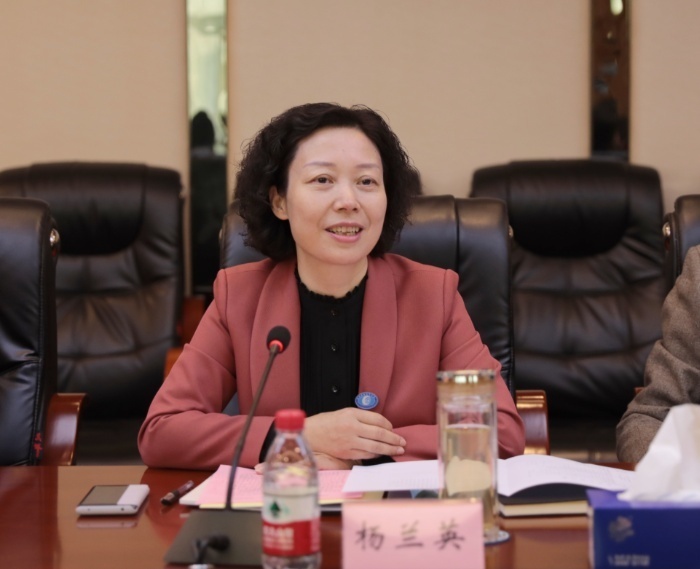 杨兰英介绍学校办学历史及近年发展取得的主要成绩