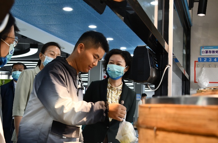 察看学生食堂 张长江/摄