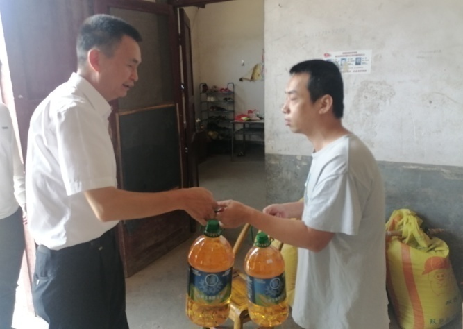 刘寒波(左)慰问困难户