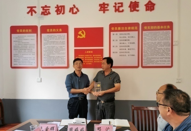 江口村党总支书记、村主任熊初开代表村党总支和全体村民对刘天浩尽心尽力帮助老百姓解决实际困难、扎实推进乡村振兴表示感谢,并与村民代表分别向其赠送“荣誉村民”纪念奖杯和锦旗。